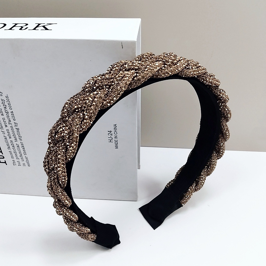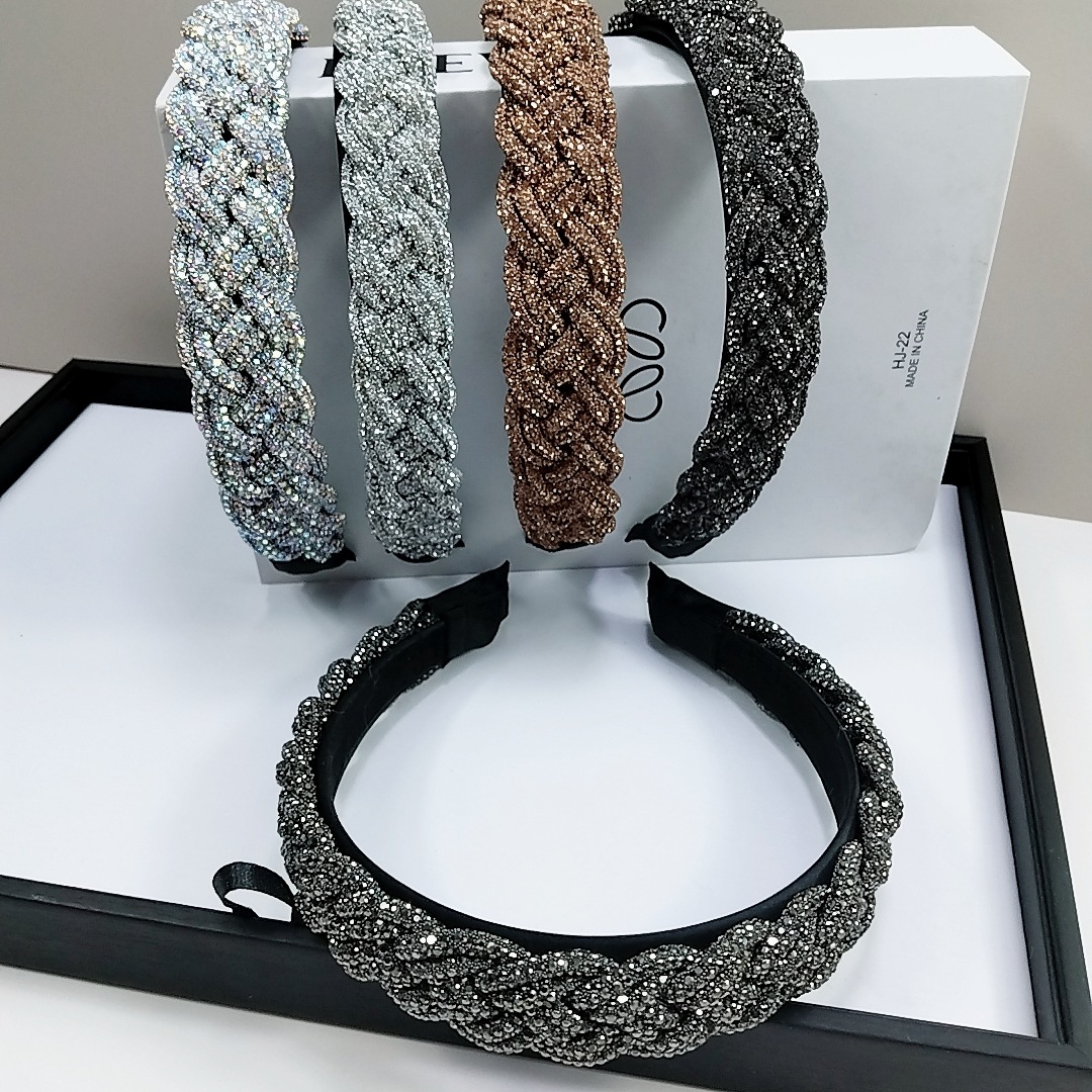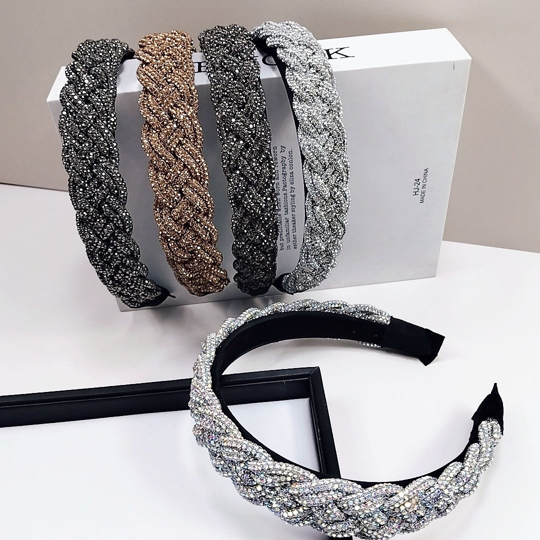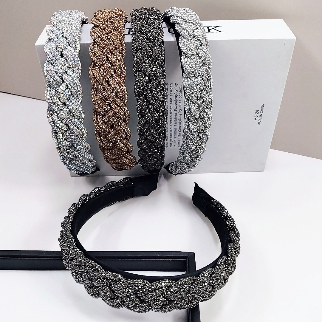 • 3cm 땋은 원형 튜브 라인스톤 머리띠 [건 블랙 다이아몬드]