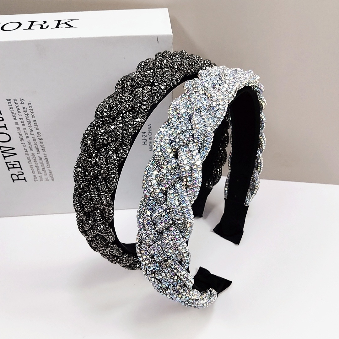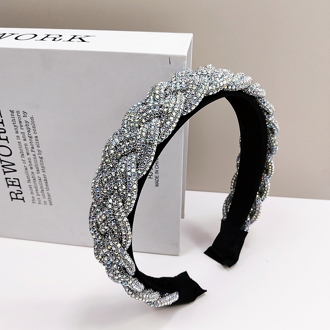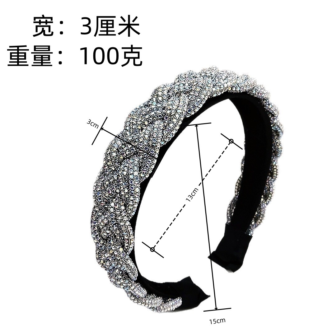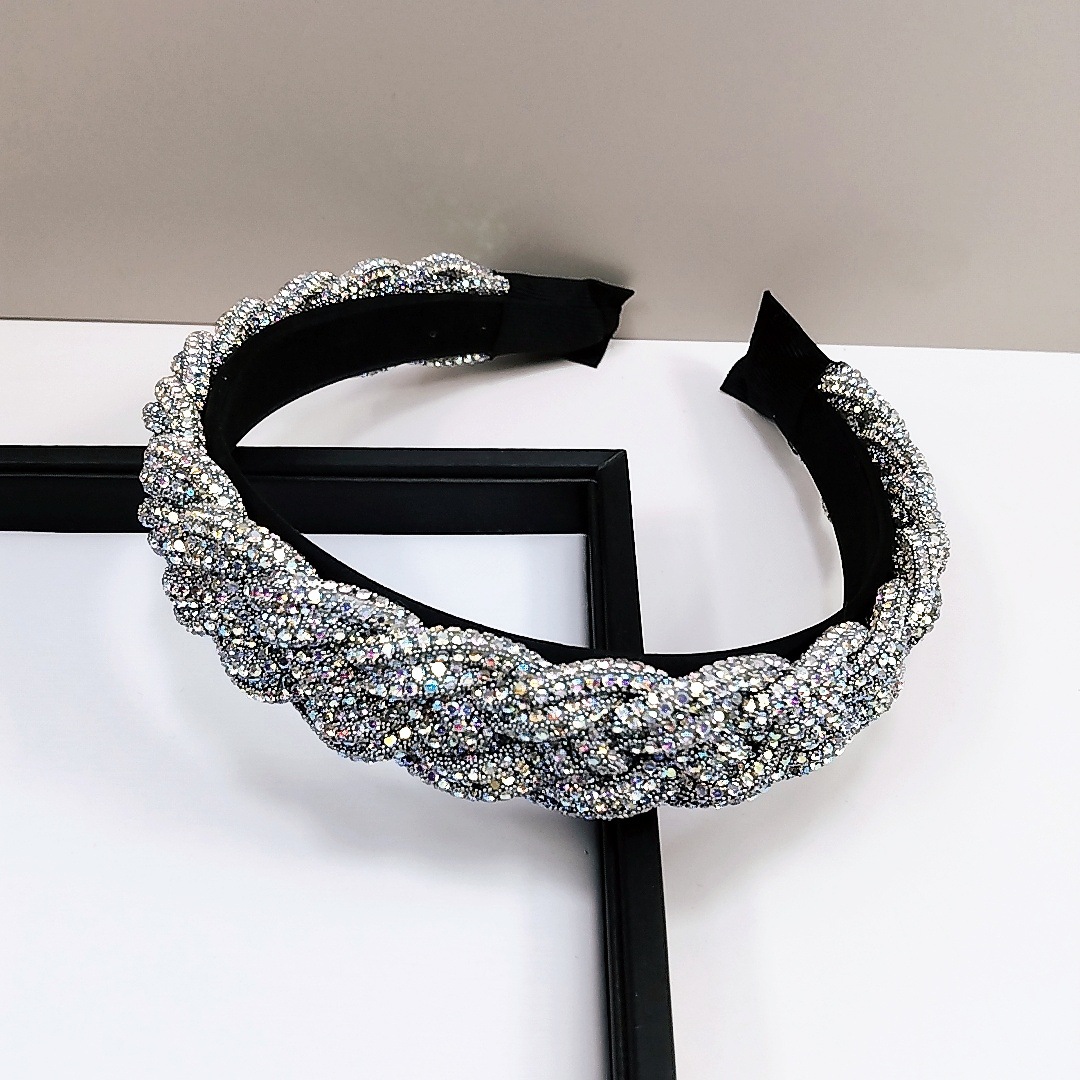 • 3cm 땋은 원형 튜브 라인스톤 머리띠 [투명 그레이 다이아몬드]