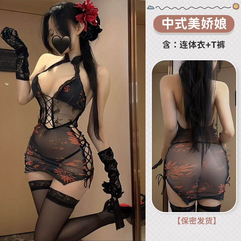 섹시한 속옷, 섹시한 레이스 시스루 치파오, 뜨겁고 투명한 열정 스트랩 유혹 유니폼 슈트, 드롭 배송스토어 가기