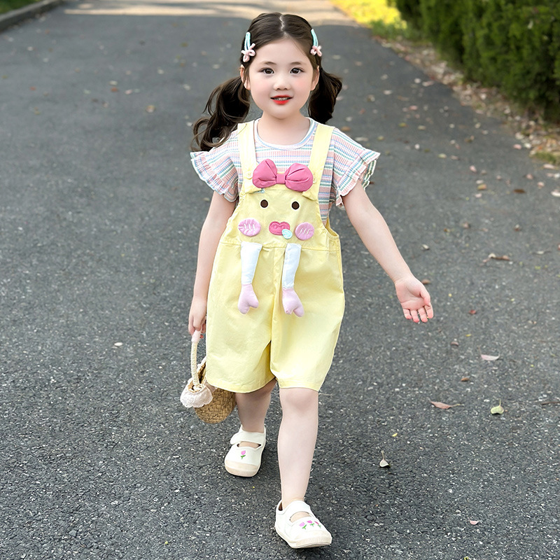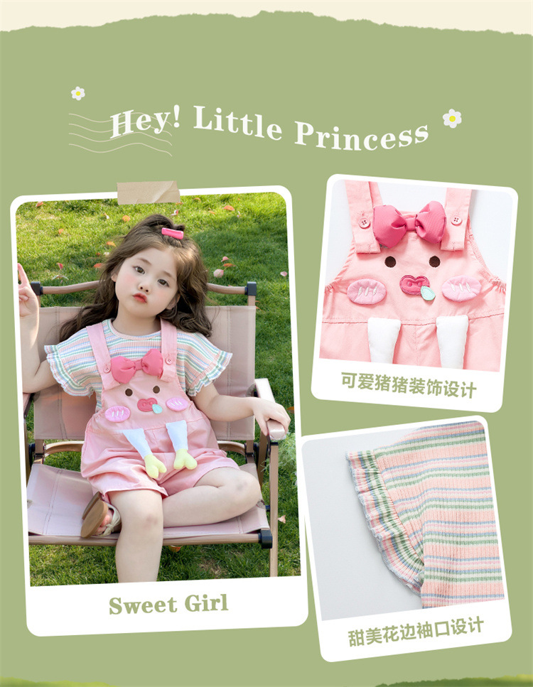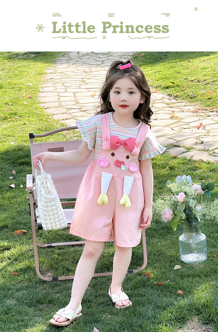 여자 작업복 정장 여름 옷 2025 새로운 어린이 만화 유행 옷 아기 투피스 여름 세트