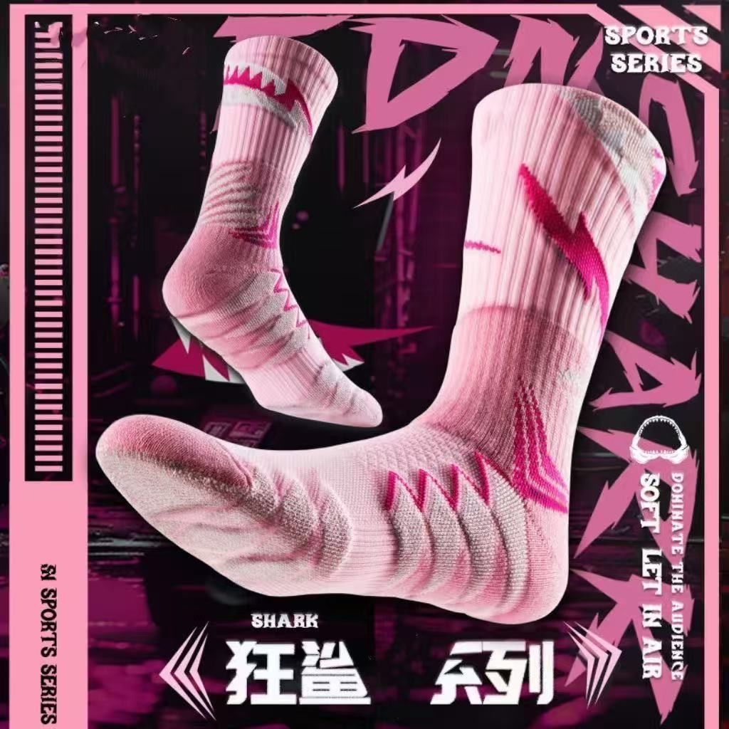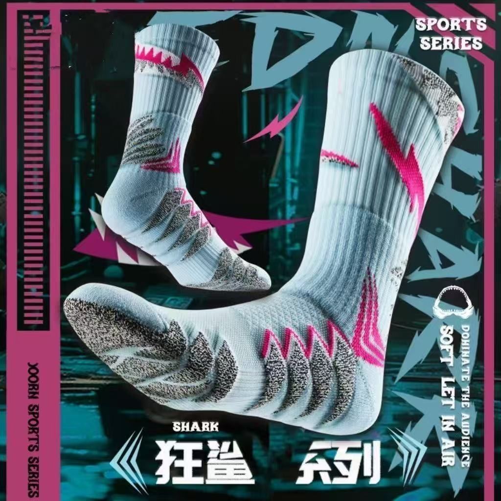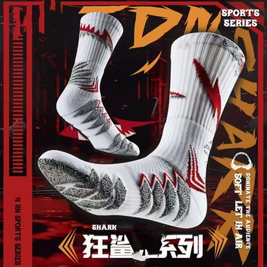 실제 전투 프로 매드 상어 농구 남자 양말 타월 바닥 달리기 훈련 두꺼운 중형 롱 튜브 청소년 스포츠 양말