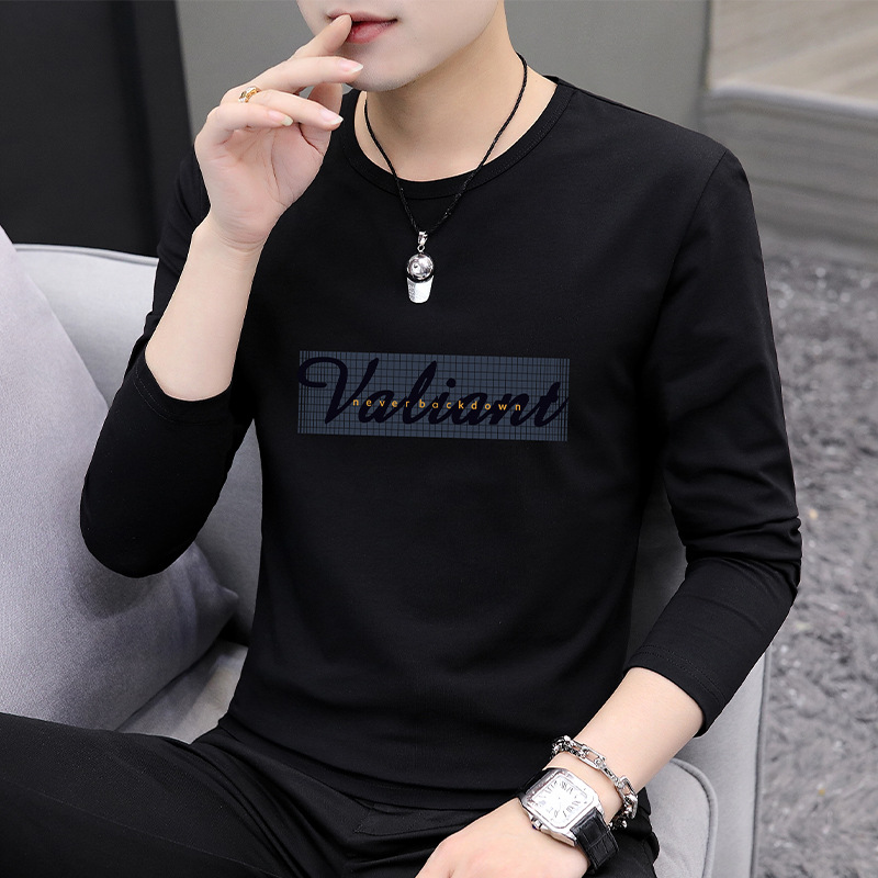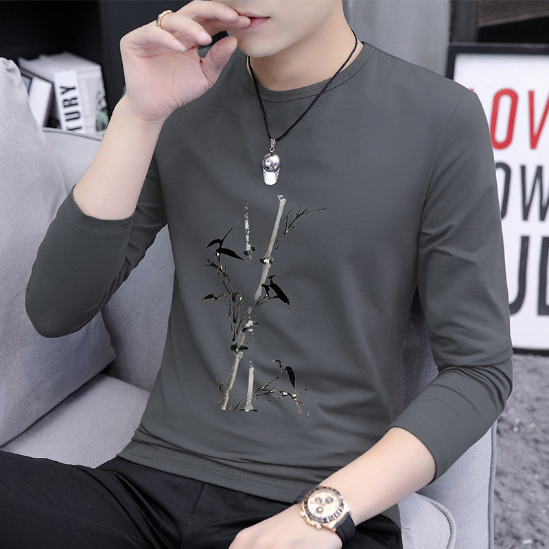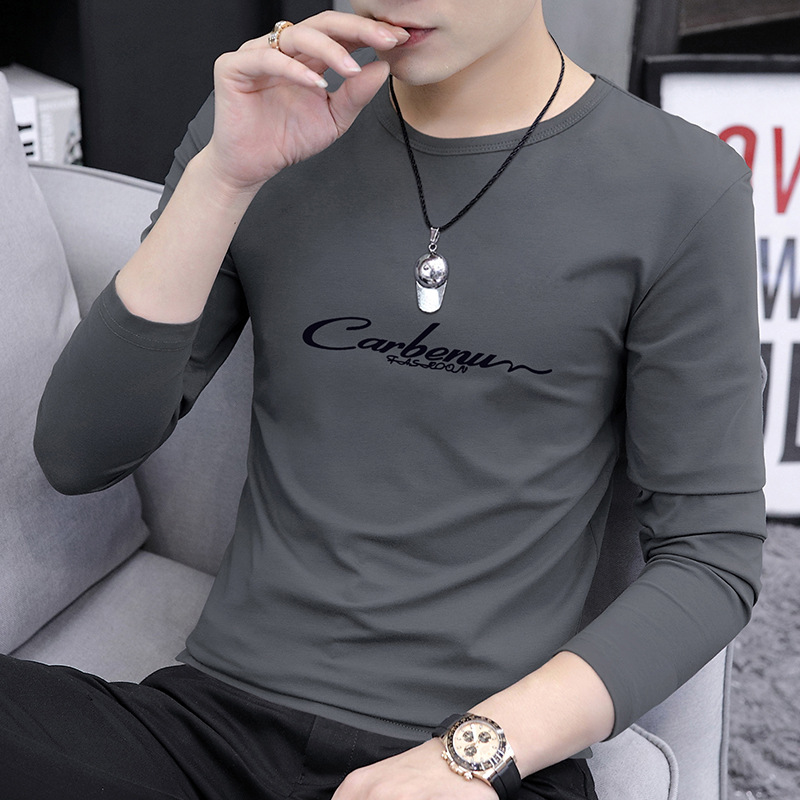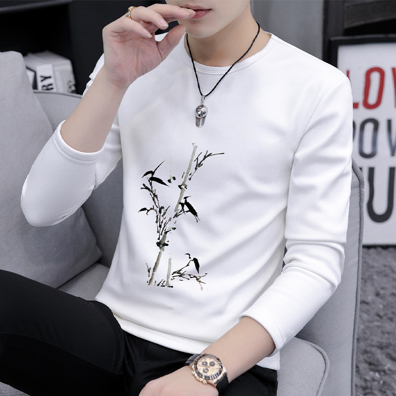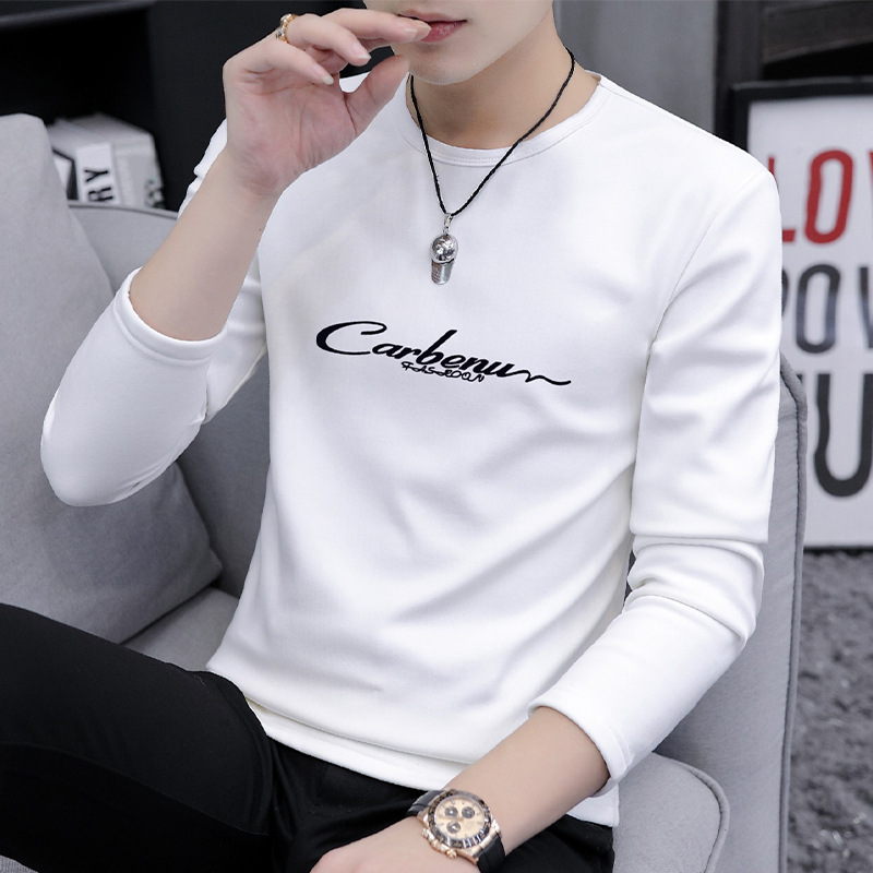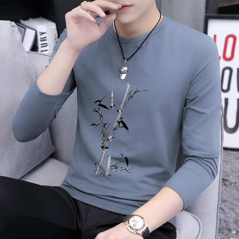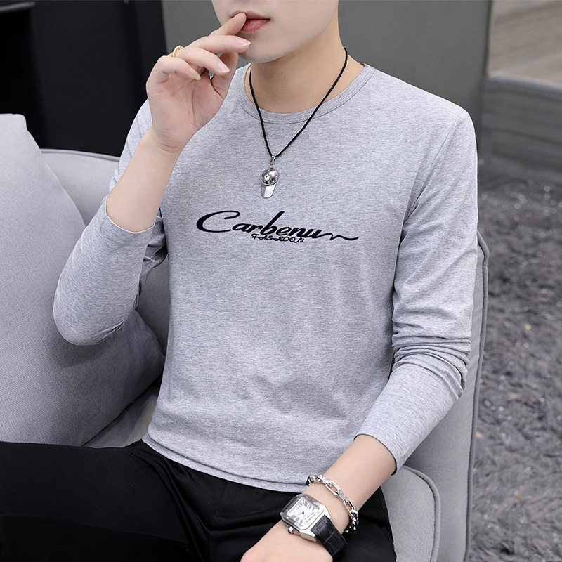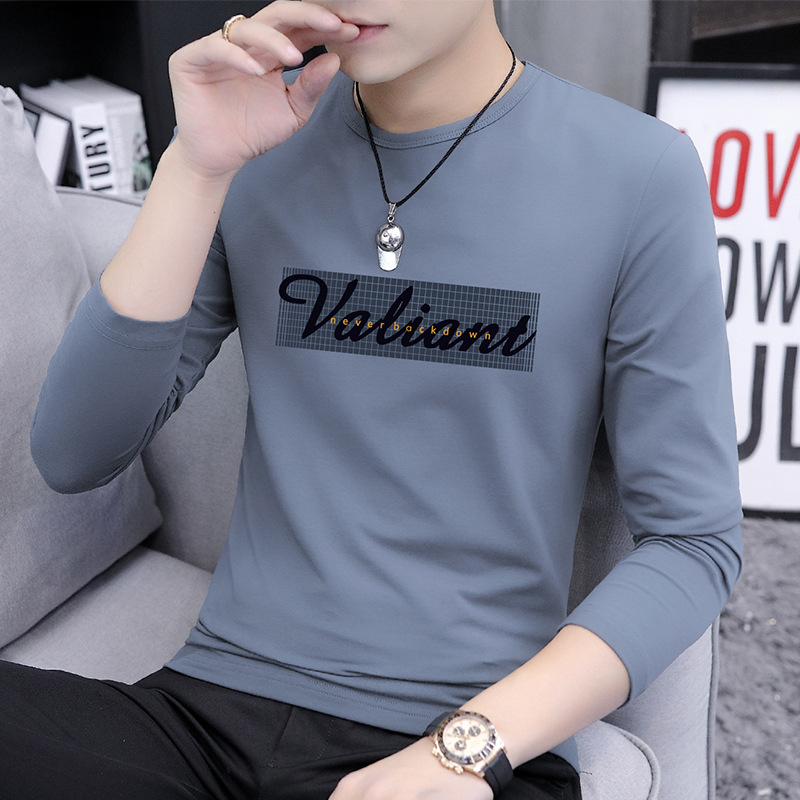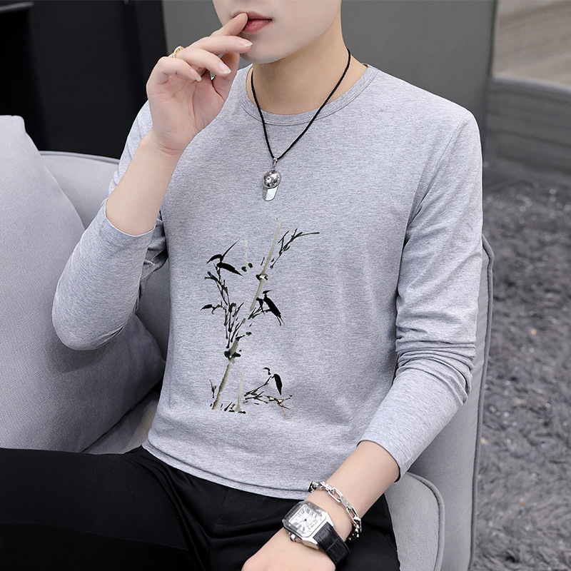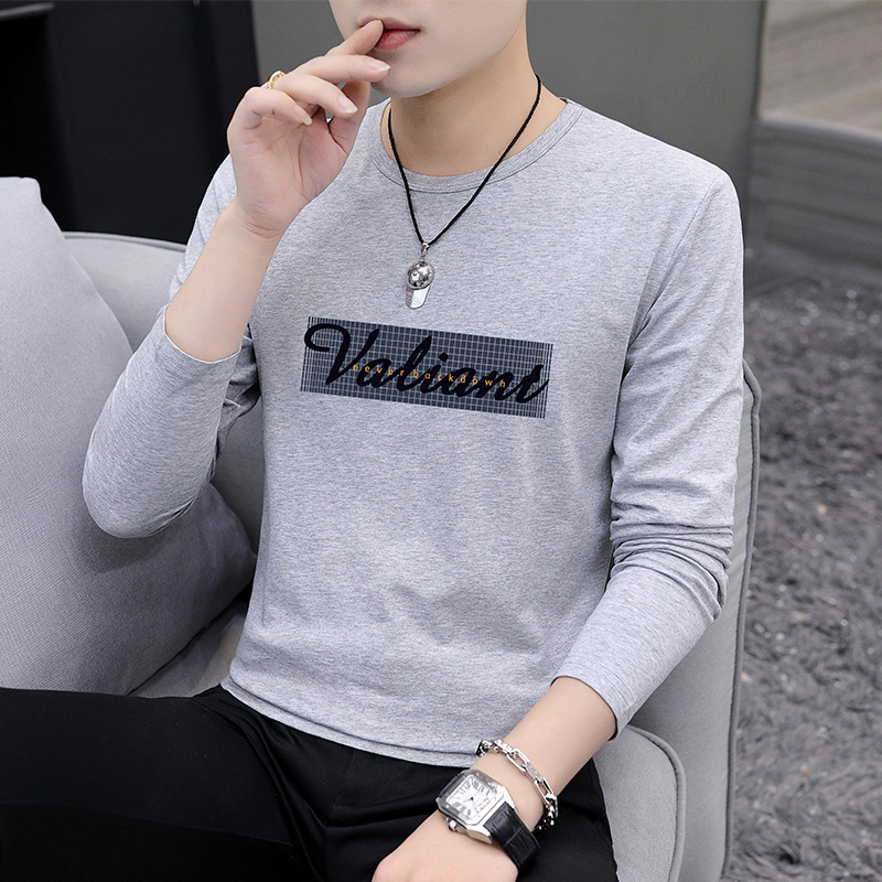 가을 겨울 신작 남성 긴팔 티셔츠 고등학생 캐주얼 트렌디 한국 스타일 탑 라운드 넥 아우터 셔츠