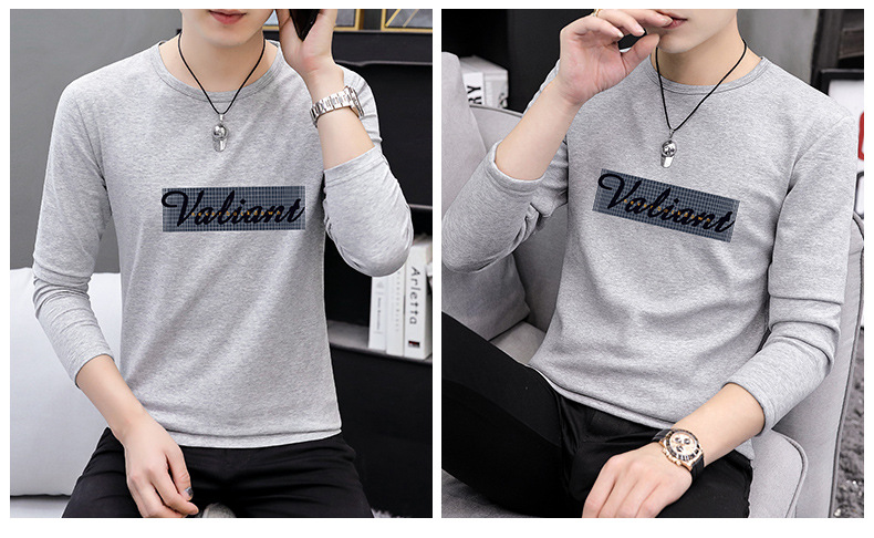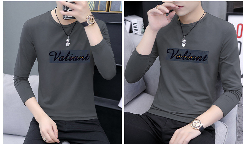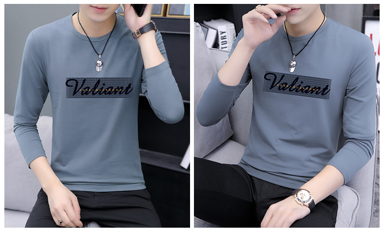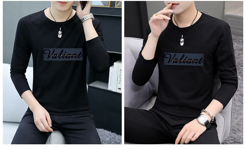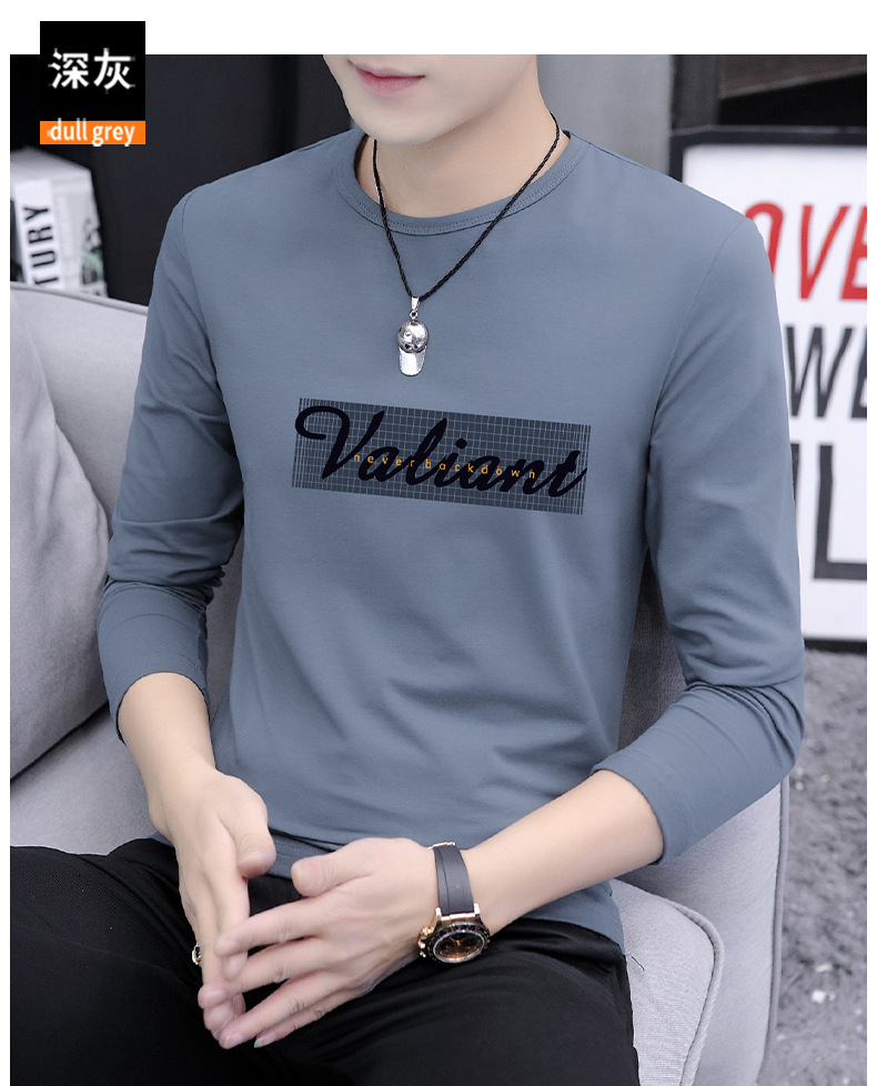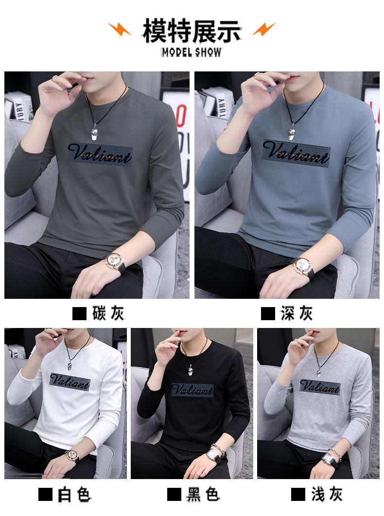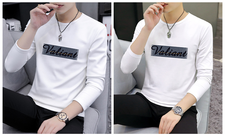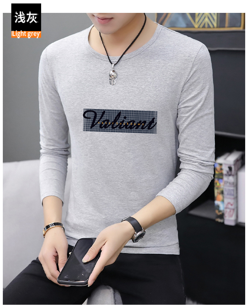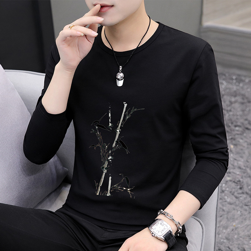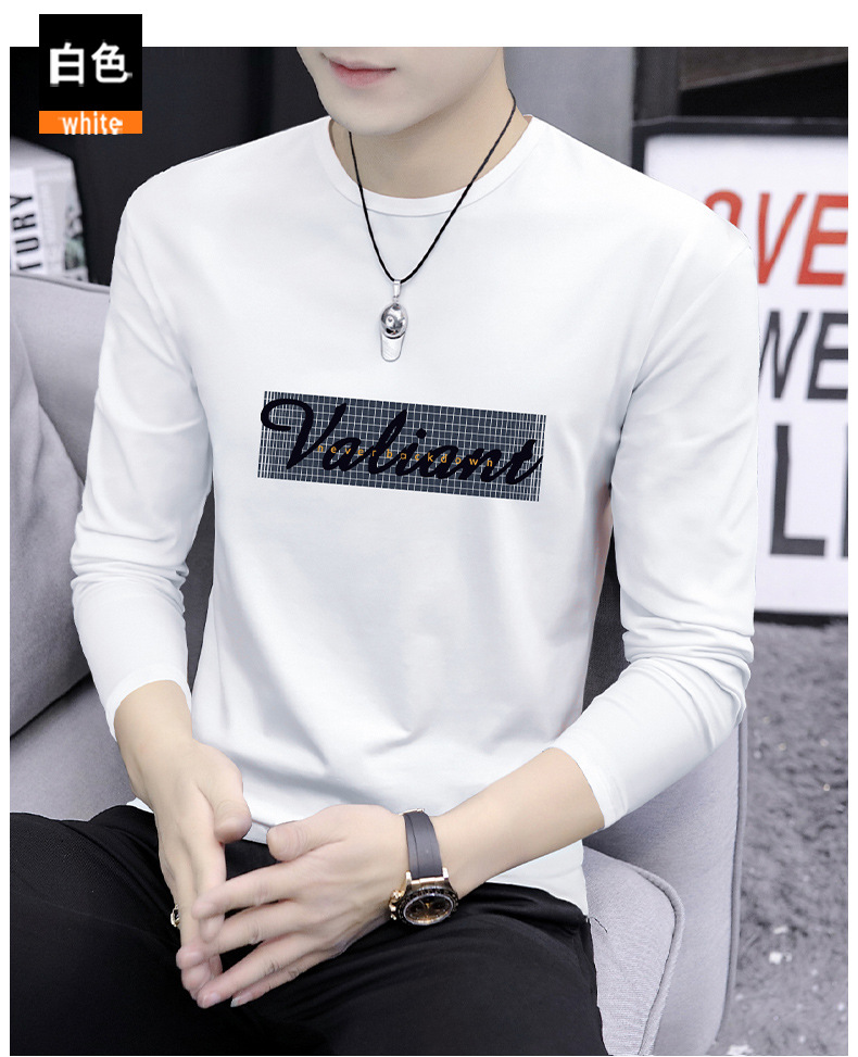 가을 겨울 신작 남성 긴팔 티셔츠 고등학생 캐주얼 트렌디 한국 스타일 탑 라운드 넥 아우터 셔츠