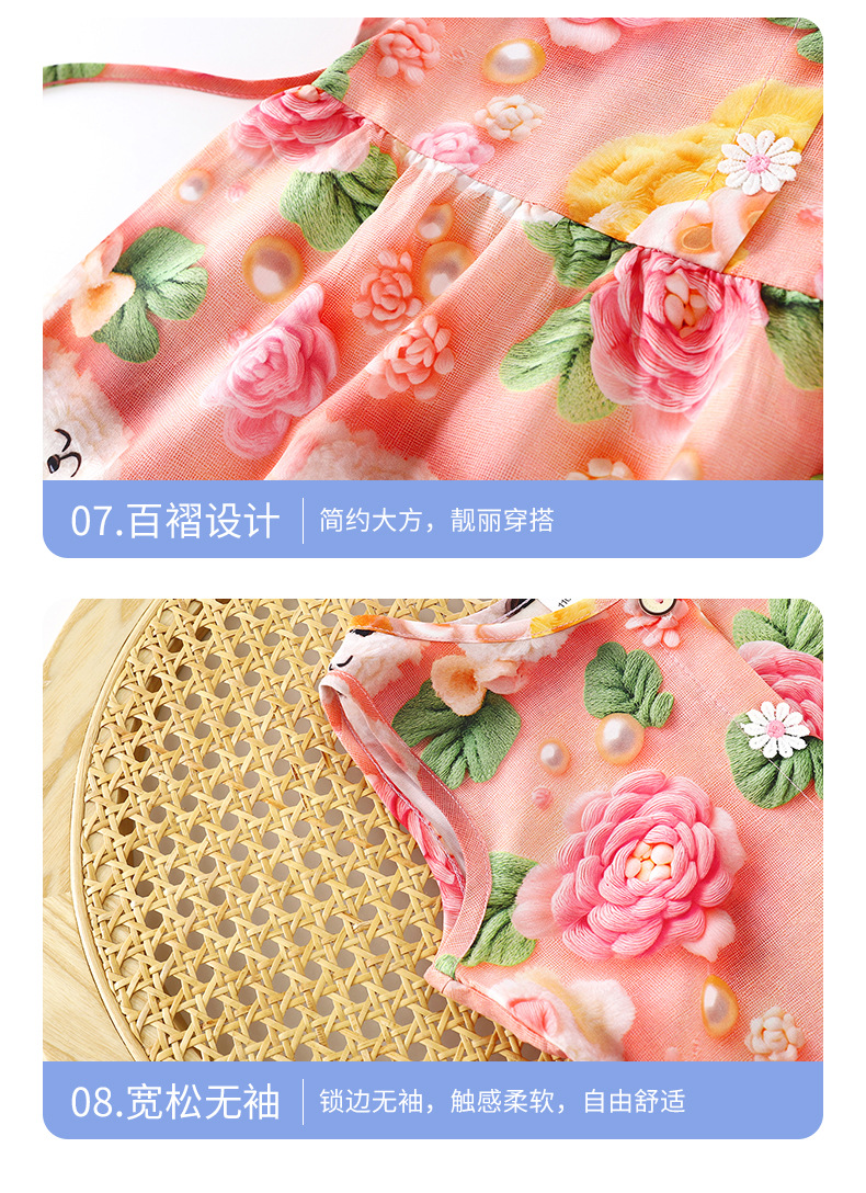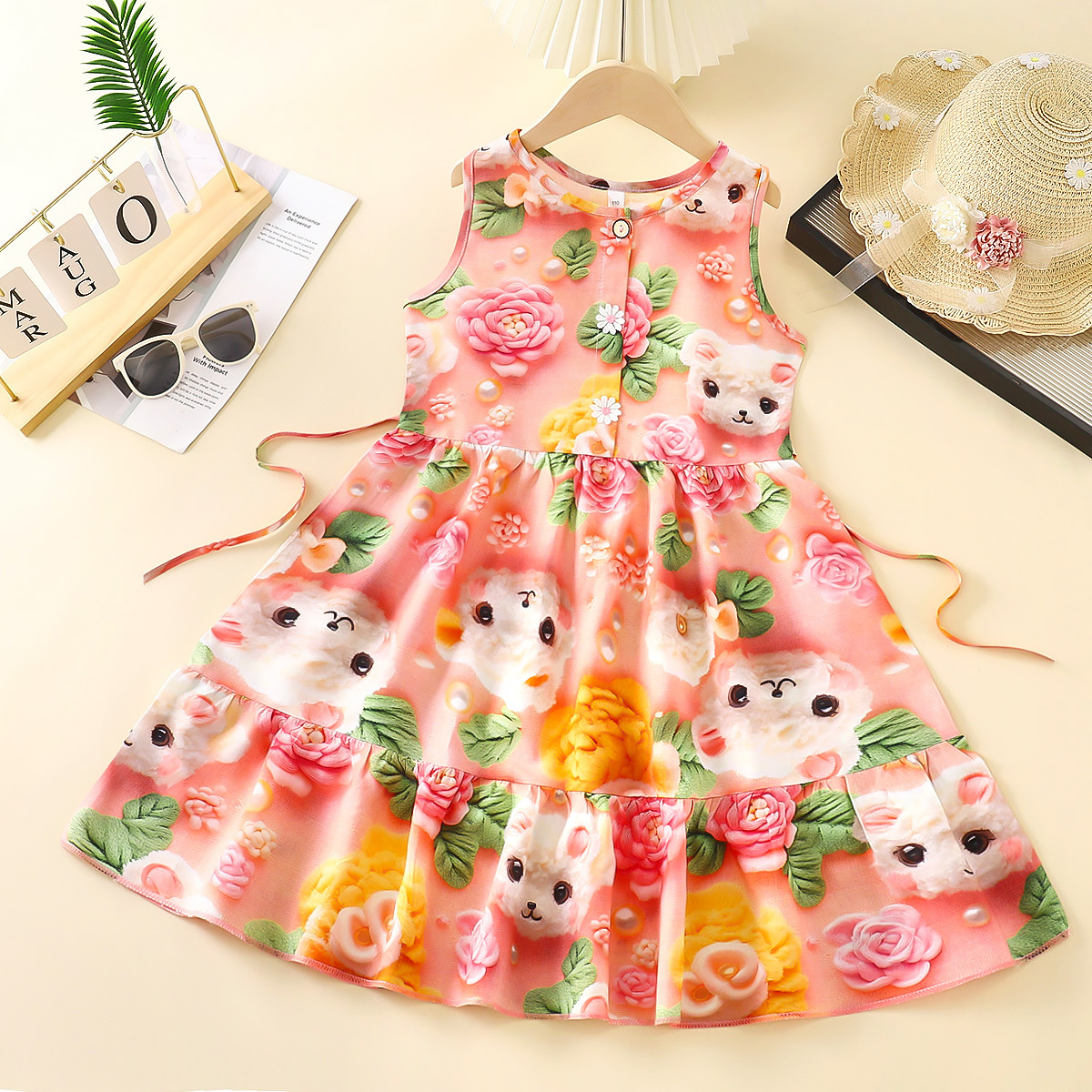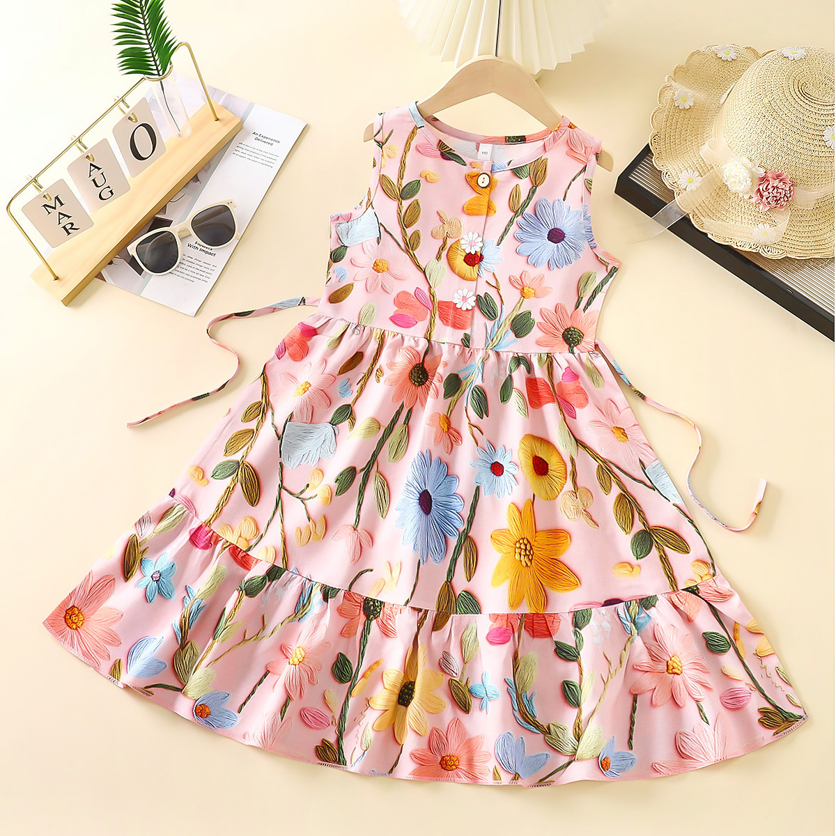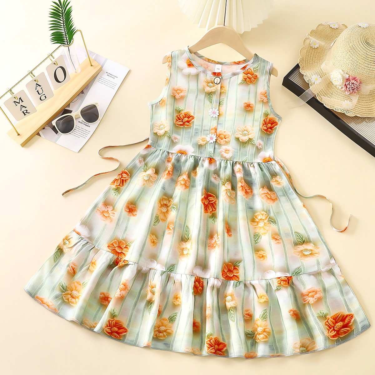 소녀의 원피스 여름 새로운 어린이 서양식 공주 원피스 3d 소녀의 꽃 긴 스트랩 비치 원피스