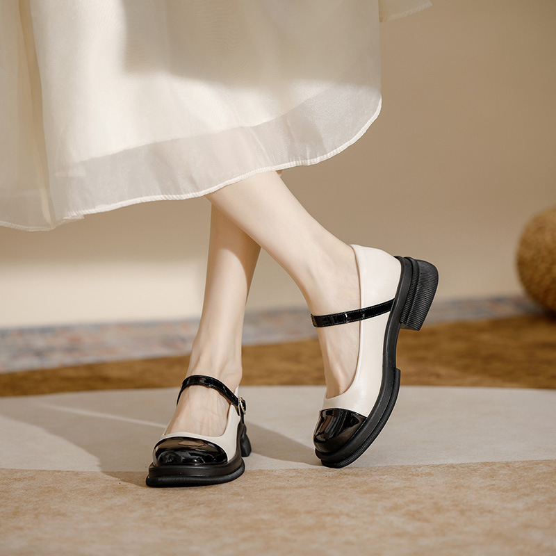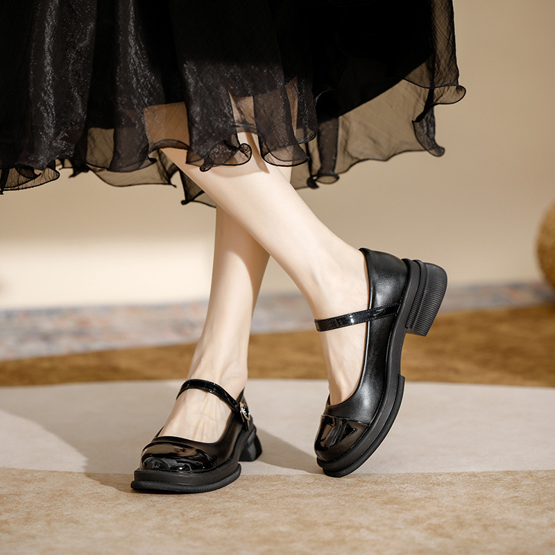 레트로 영국 스타일 메리 제인 샌들 2025 새로운 로퍼 여성 프렌치 슈즈 스커트가있는 두꺼운 밑창스토어 가기