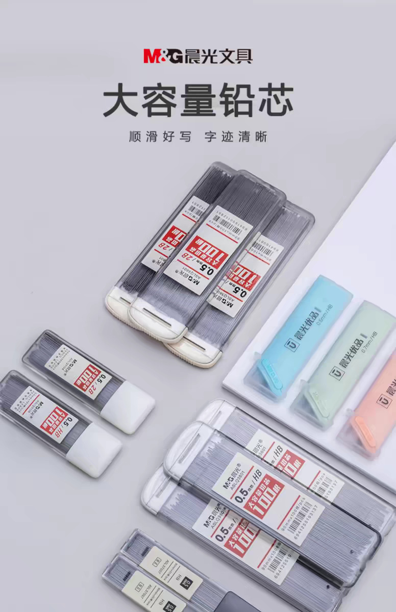 아침 빛 자동 연필 심 0.5/0.7 대용량 심 학생 쓰기 쉽게 깨지지 않는 샤프 펜슬 리필스토어 가기