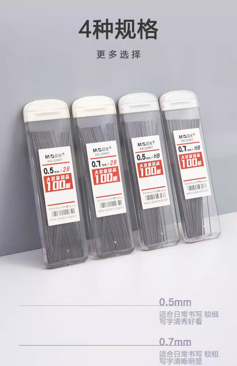 아침 빛 자동 연필 심 0.5/0.7 대용량 심 학생 쓰기 쉽게 깨지지 않는 샤프 펜슬 리필