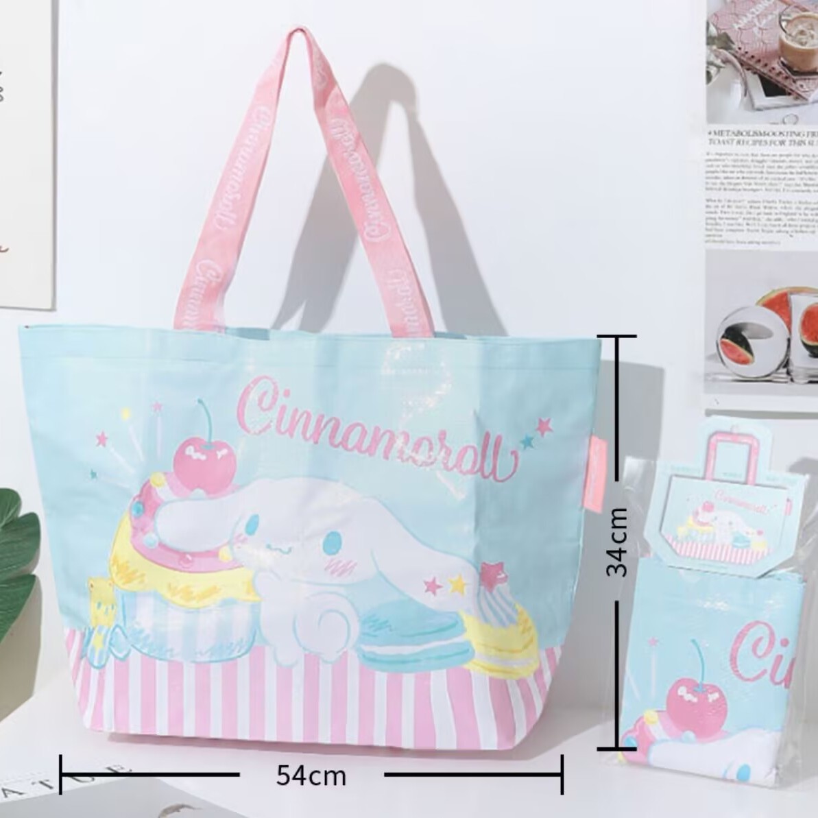 산리오 정품 시리즈 짠 쇼핑백 다기능 보관 가방 두꺼운 야외 어깨 쇼핑백