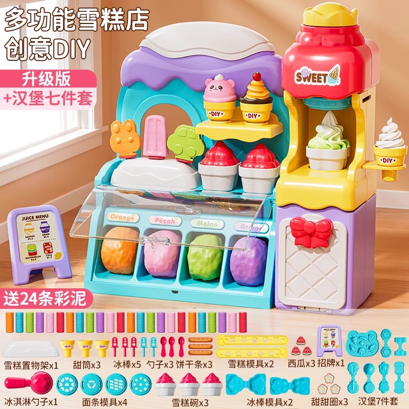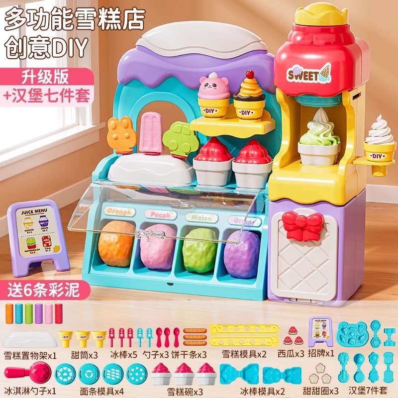 어린이 놀이 장난감 아이스크림 아이스크림 기계 그물 레드 DIY 컬러 클레이 햄버거 울트라 라이트 클레이 플라스틱 금형스토어 가기