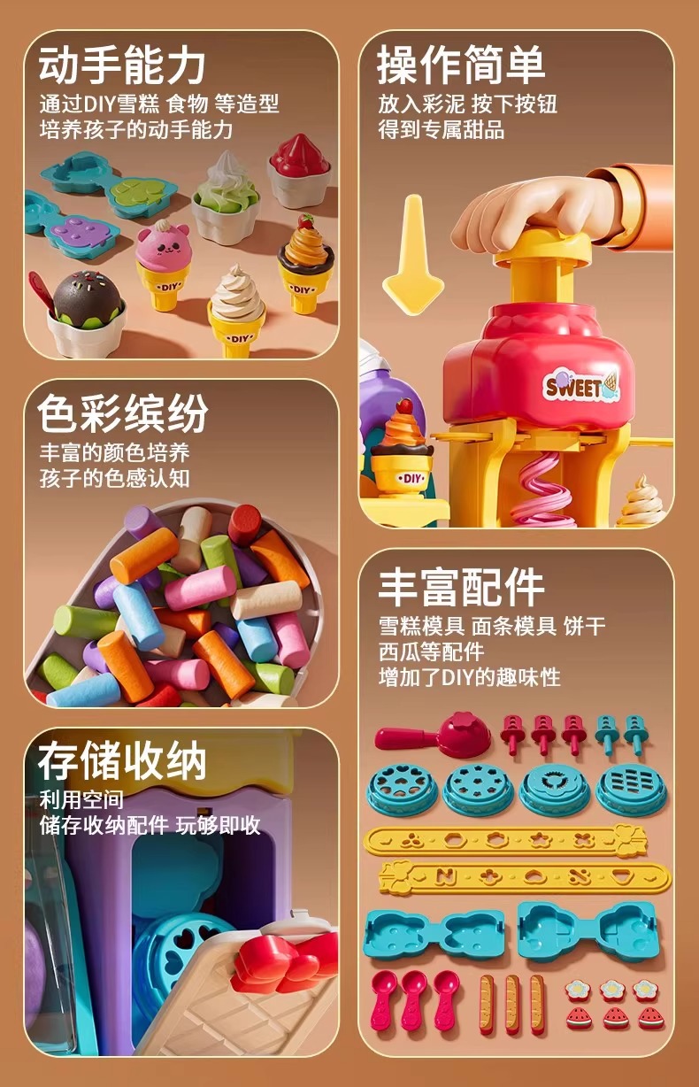 어린이 놀이 장난감 아이스크림 아이스크림 기계 그물 레드 DIY 컬러 클레이 햄버거 울트라 라이트 클레이 플라스틱 금형