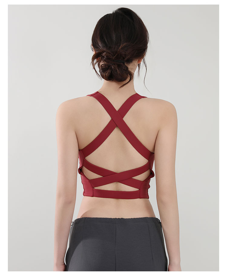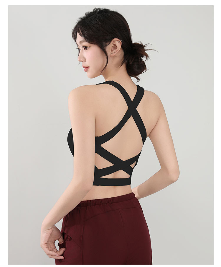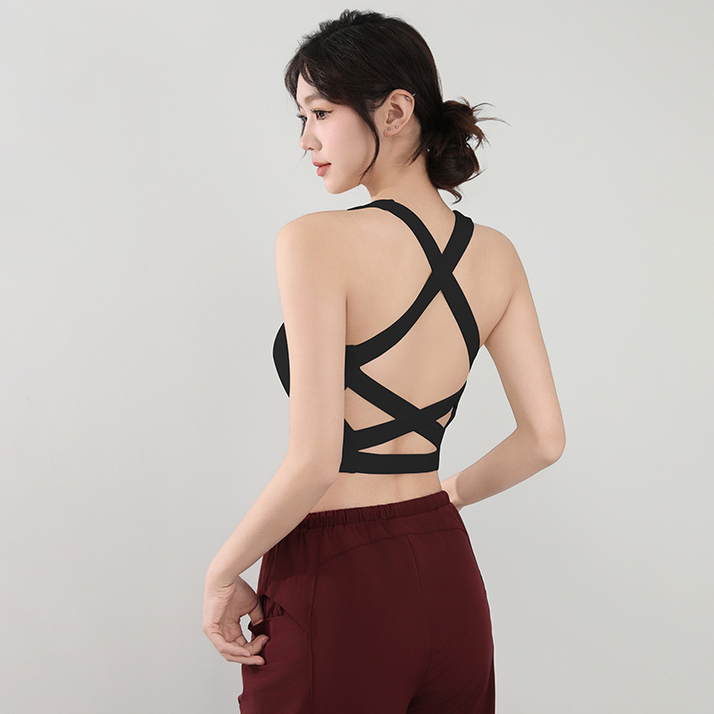 크로스 스트랩이 있는 일체형 컵 요가 브라, 스포츠 뷰티 백, 고강도 충격 방지 런닝 피트니스 조끼, 필라테스 속옷스토어 가기