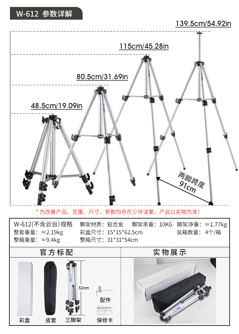 Weifeng 전문 삼각대 시리즈 W-612(헤드 제외)스토어 가기