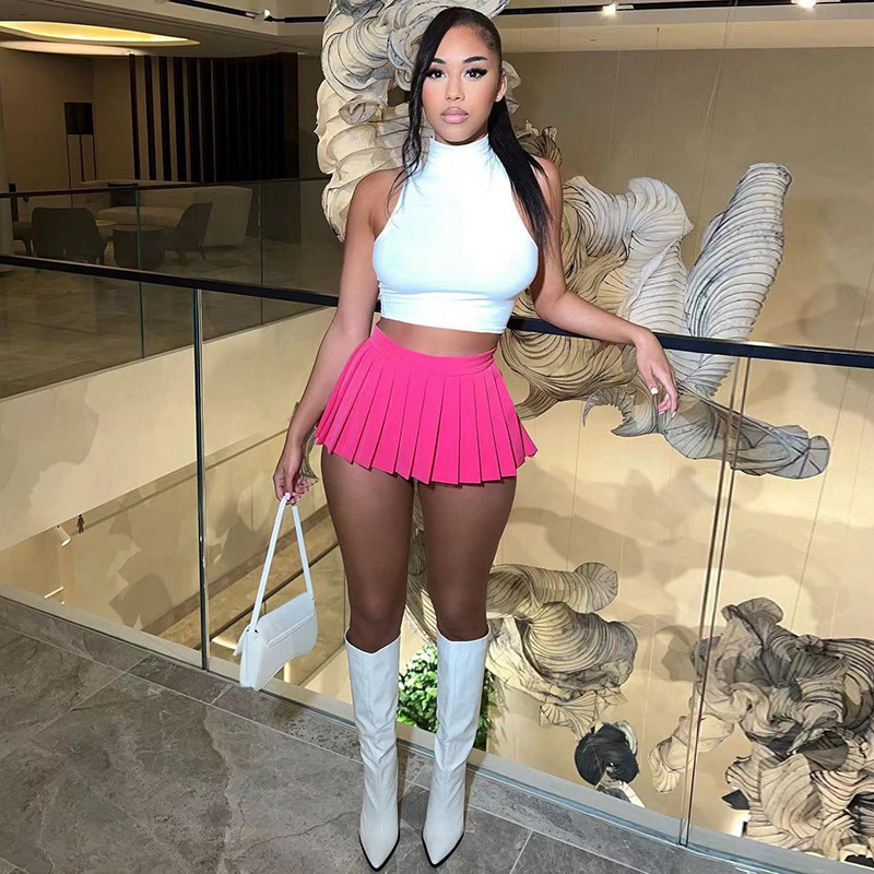 신상 A라인 플리츠 미니 스커트 인기 캐주얼 스커트 핫 섹시 JK 단색 초미니 스커트 넓은 밑단