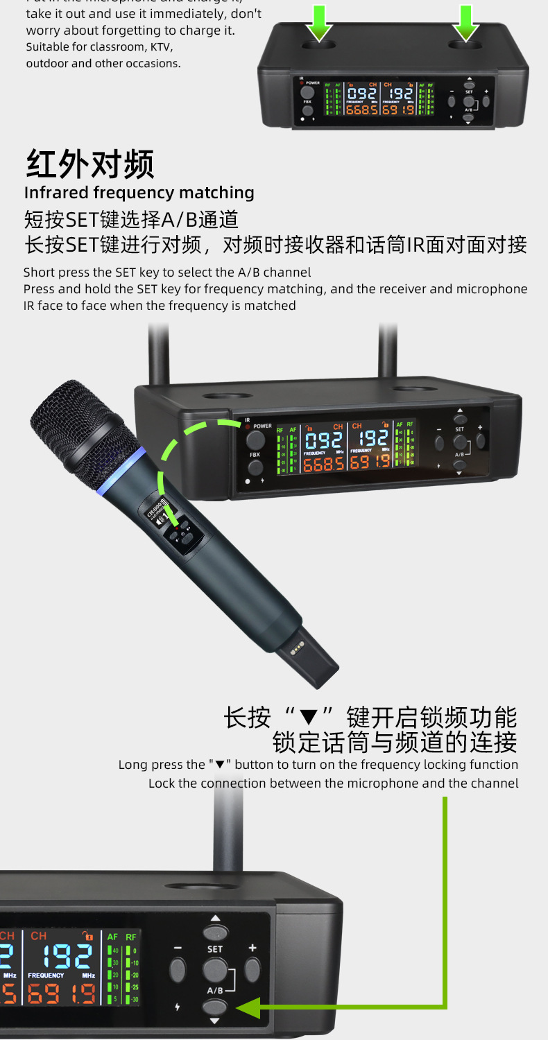 무선 충전 마이크 1-2 마이크 무대 노래 다이나믹 범용 성능 라이브 방송 전문 휴대용 홈