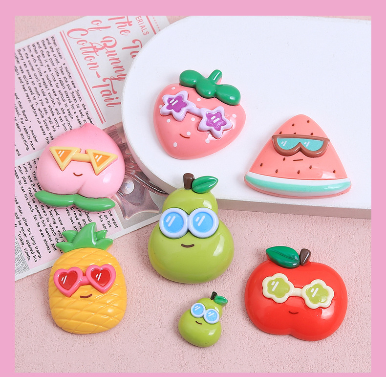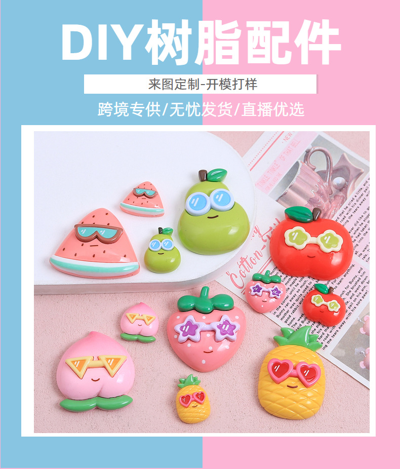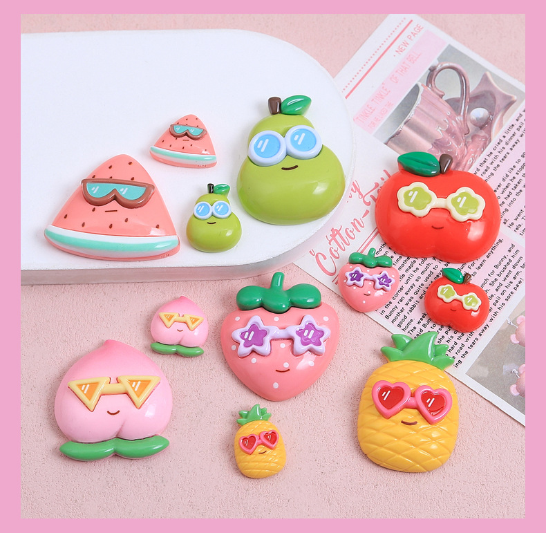 귀여운 선글라스 과일 만화 DIY 보석 액세서리 크림 접착제 수지 작은 액세서리 헤어핀 수제 소재 가방
