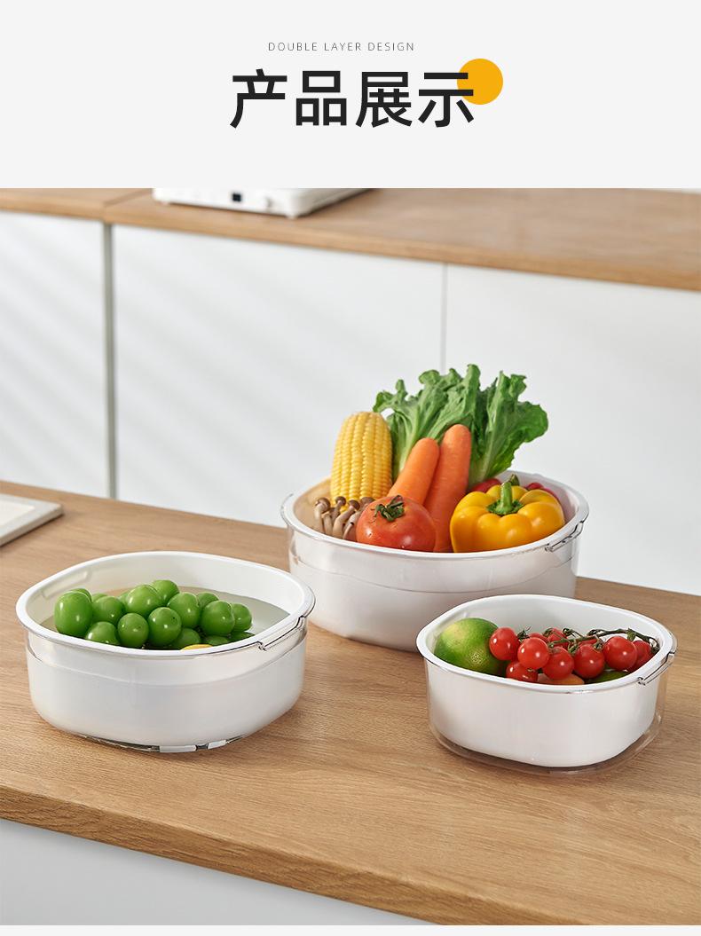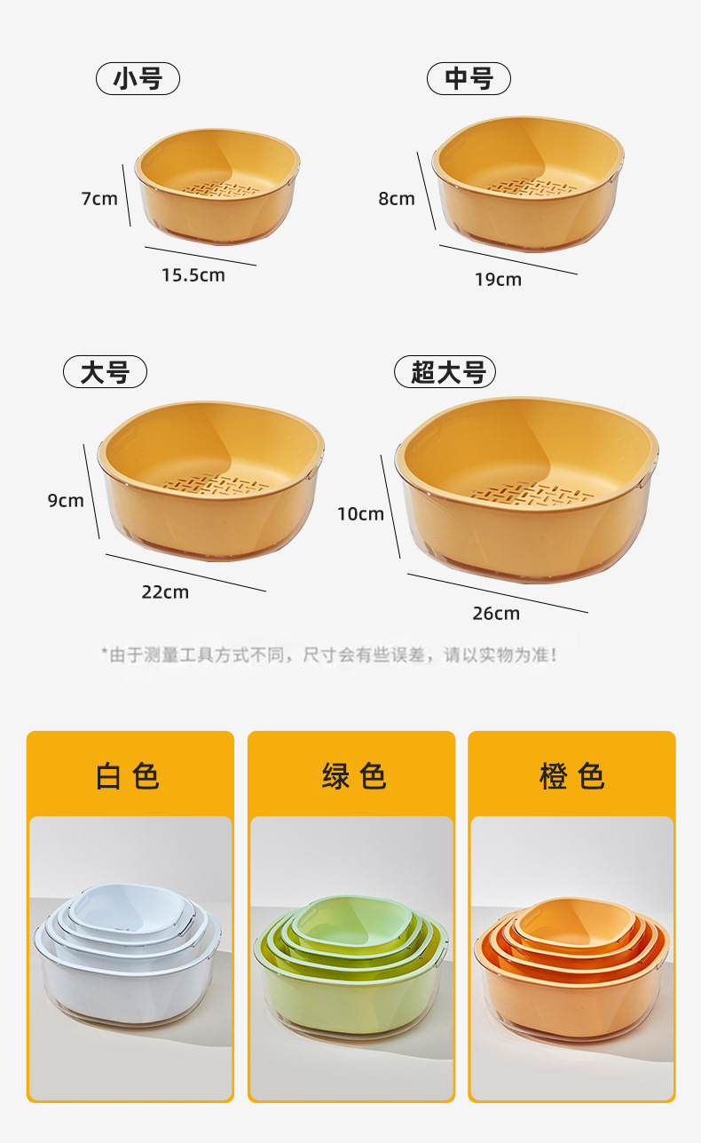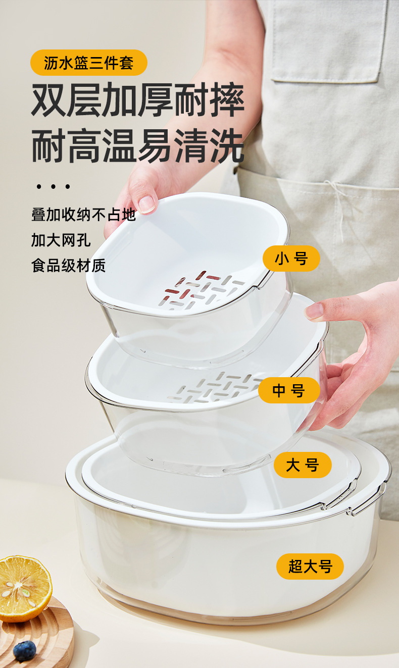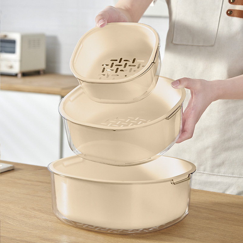가정용 주방 중공 배수 쌀 씻기 야채 배수 바구니 빛 럭셔리 더블 레이어 두꺼운 플라스틱 배수 바구니