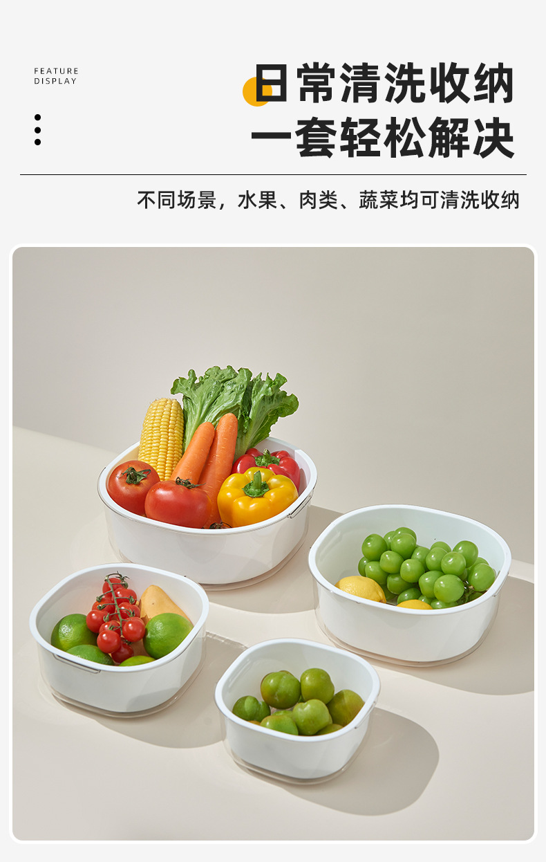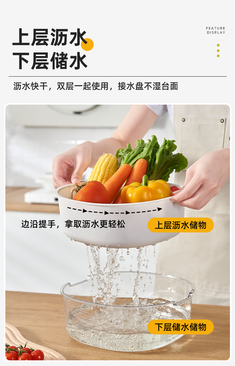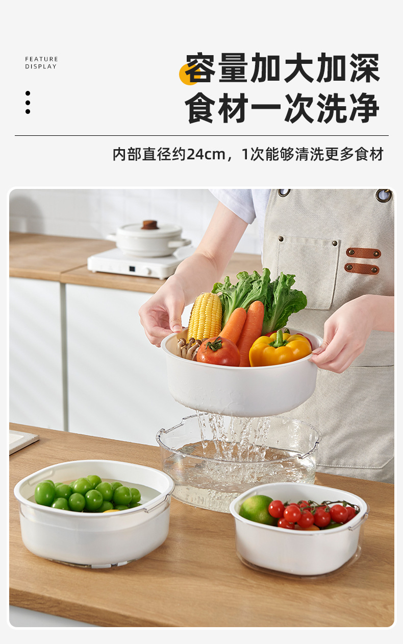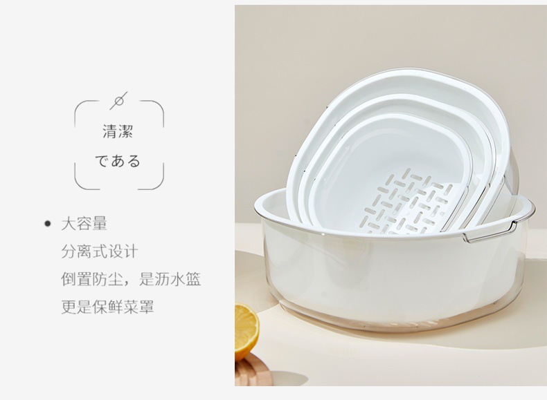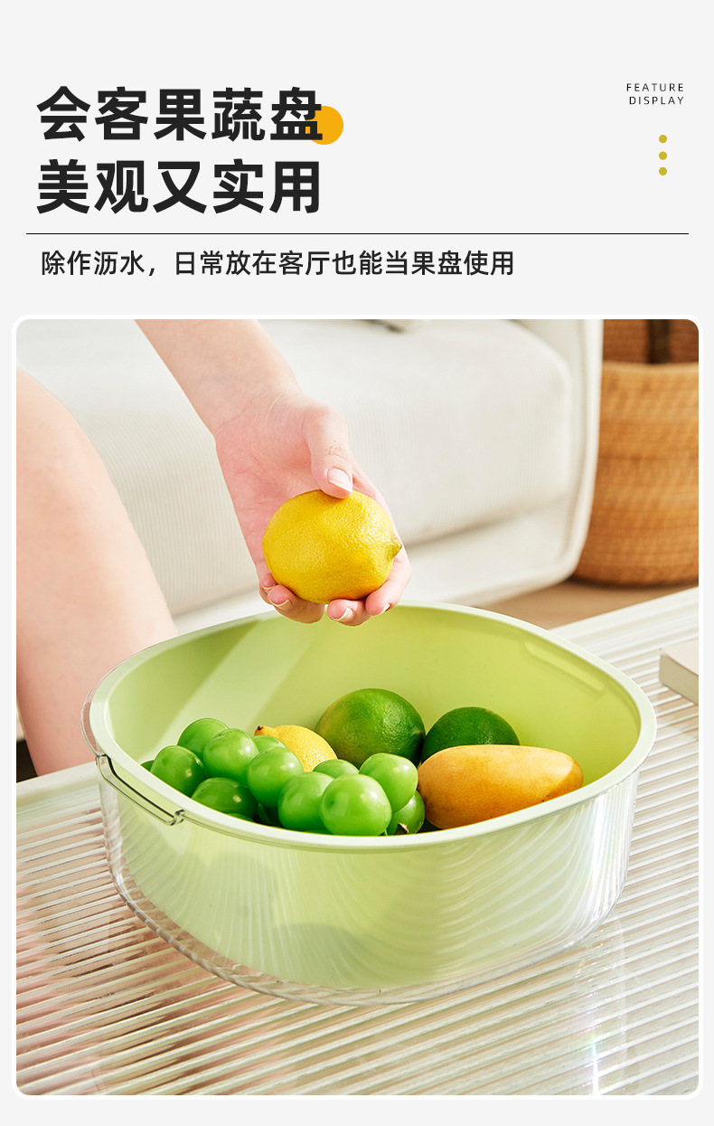 가정용 주방 중공 배수 쌀 씻기 야채 배수 바구니 빛 럭셔리 더블 레이어 두꺼운 플라스틱 배수 바구니