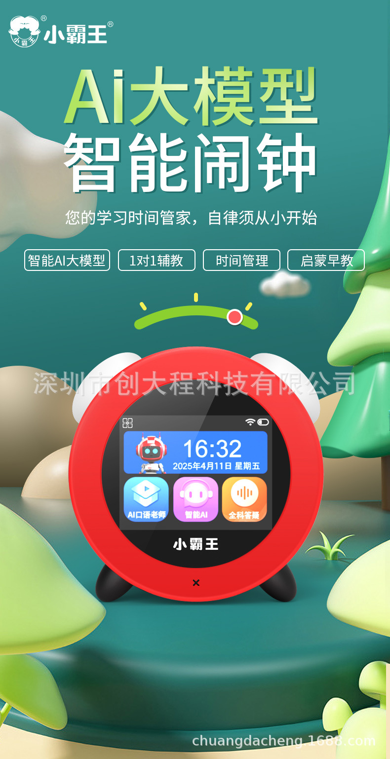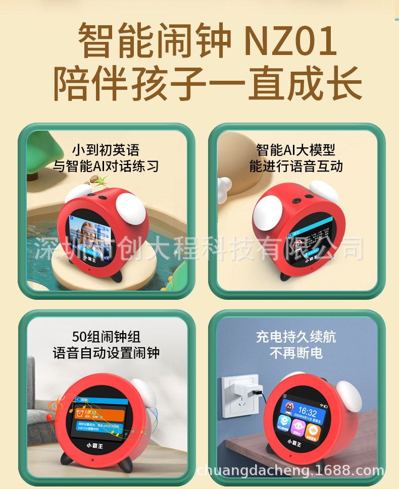 Xiaobawang 지능형 다기능 알람 시계 AI 대화 청취 가능한 영어 학생 어린이 조기 교육 계몽 블루투스 스피커스토어 가기