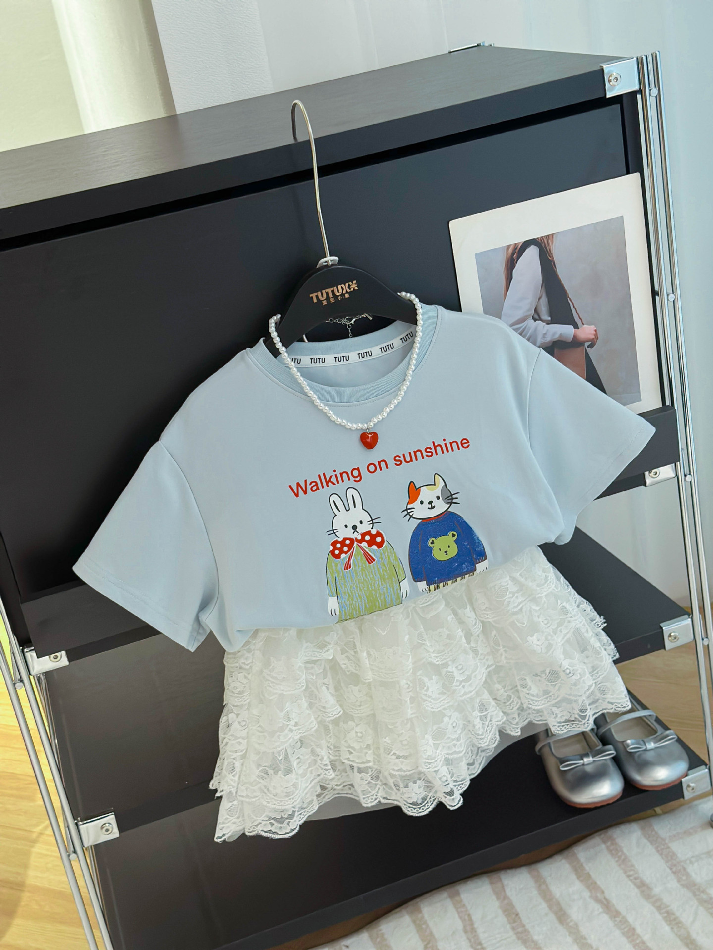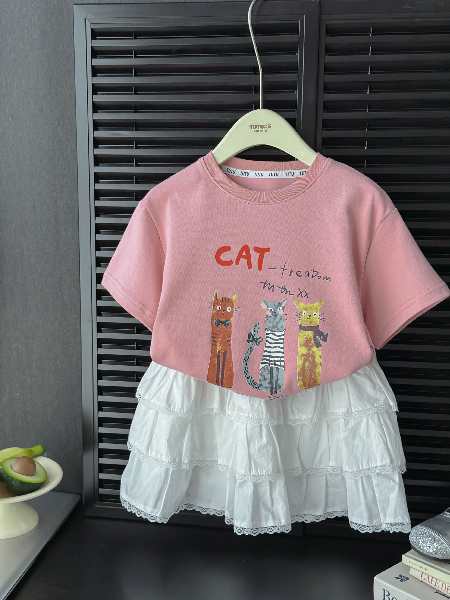 소녀 세트 여름 2025 여름 새로운 도파민 편안한 통기성 올 매치 만화 반팔 티셔츠 스커트스토어 가기