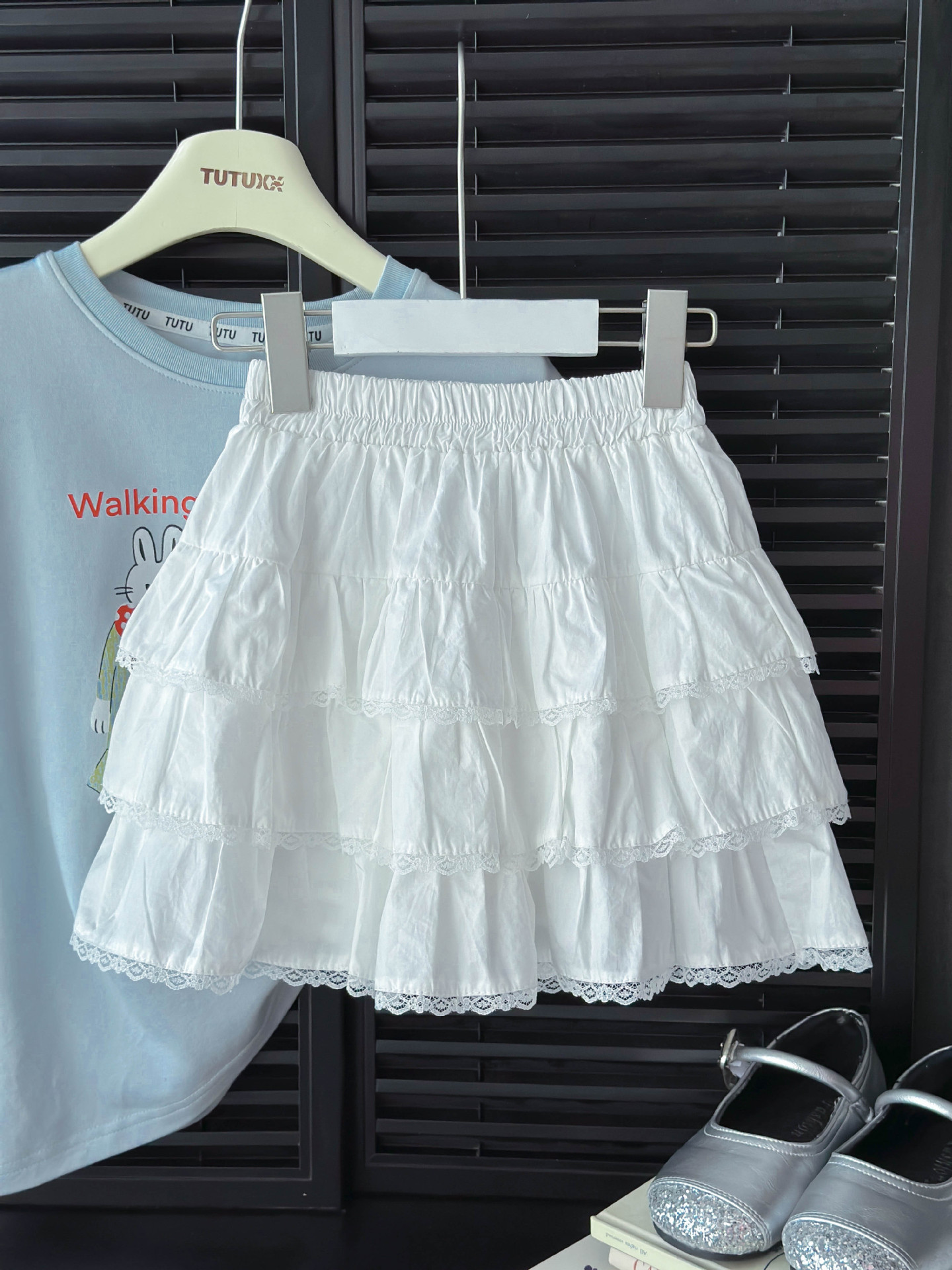 소녀 세트 여름 2025 여름 새로운 도파민 편안한 통기성 올 매치 만화 반팔 티셔츠 스커트