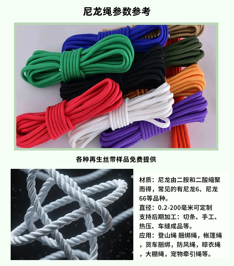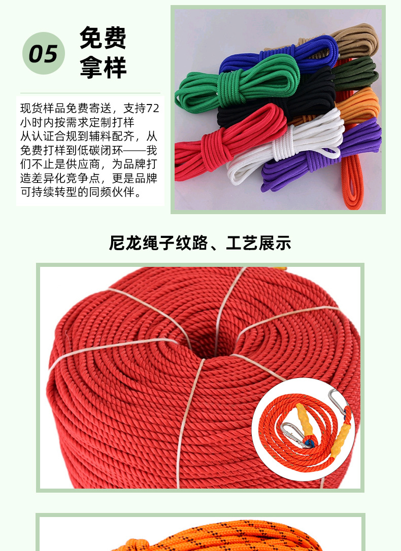 나일론 로프 고강도 내마모성 미끄럼 방지 야외 바인딩 로프 텐트 방풍 짠 나일론 로프를 사용자 정의할 수 있습니다.