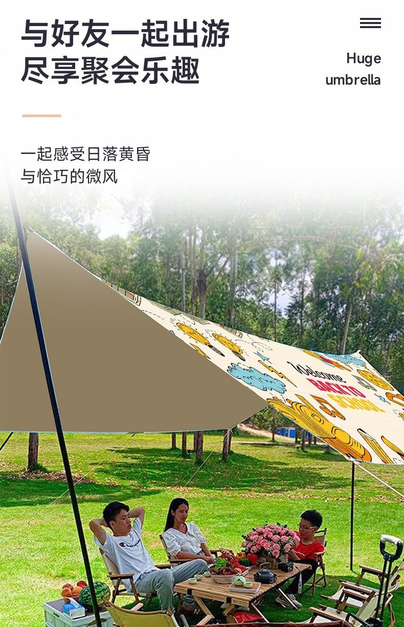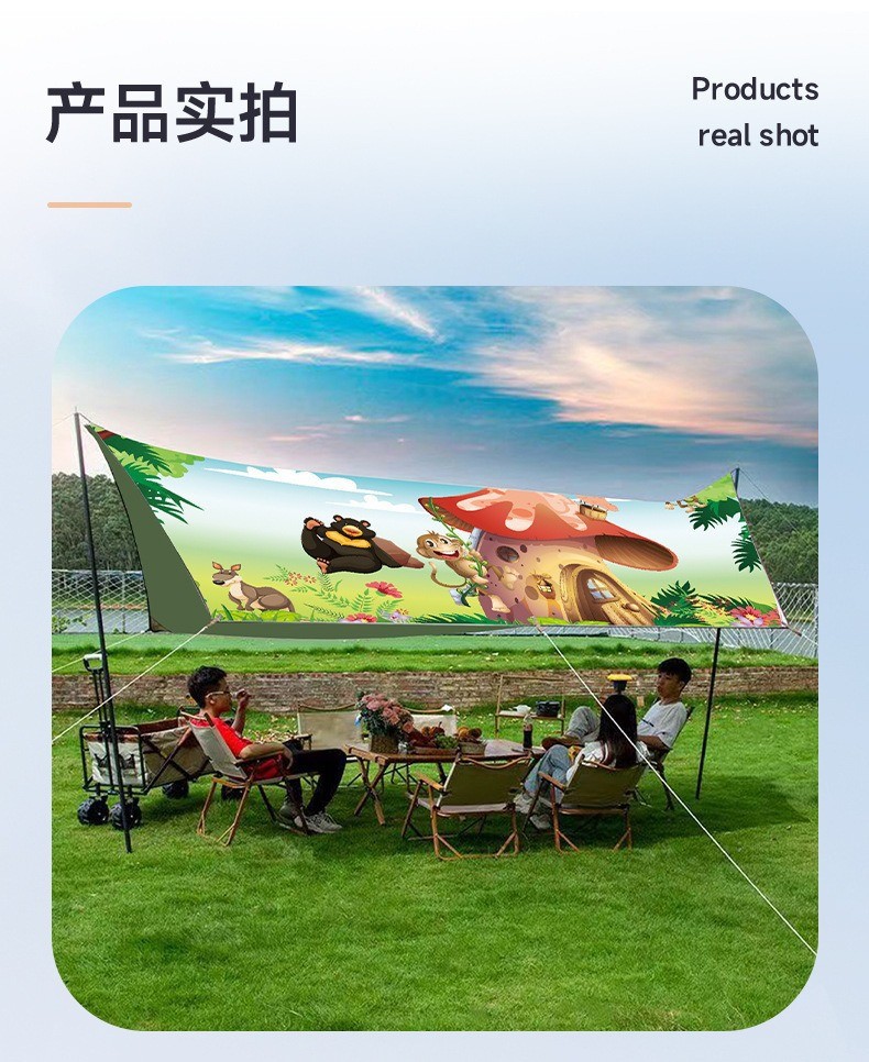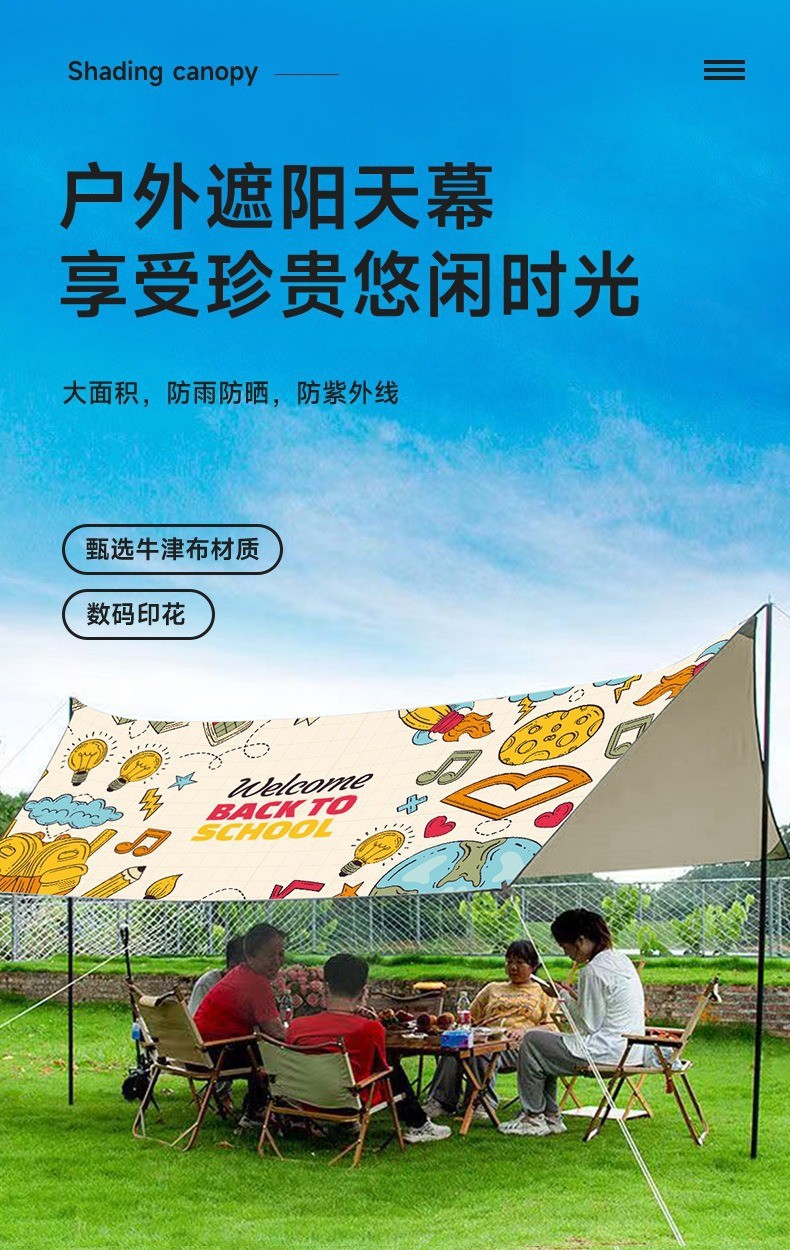 초대형 태양 보호 인쇄 캐노피 텐트 야외 캠핑 안티 UV 휴대용 육각형 나비 캠핑 천막