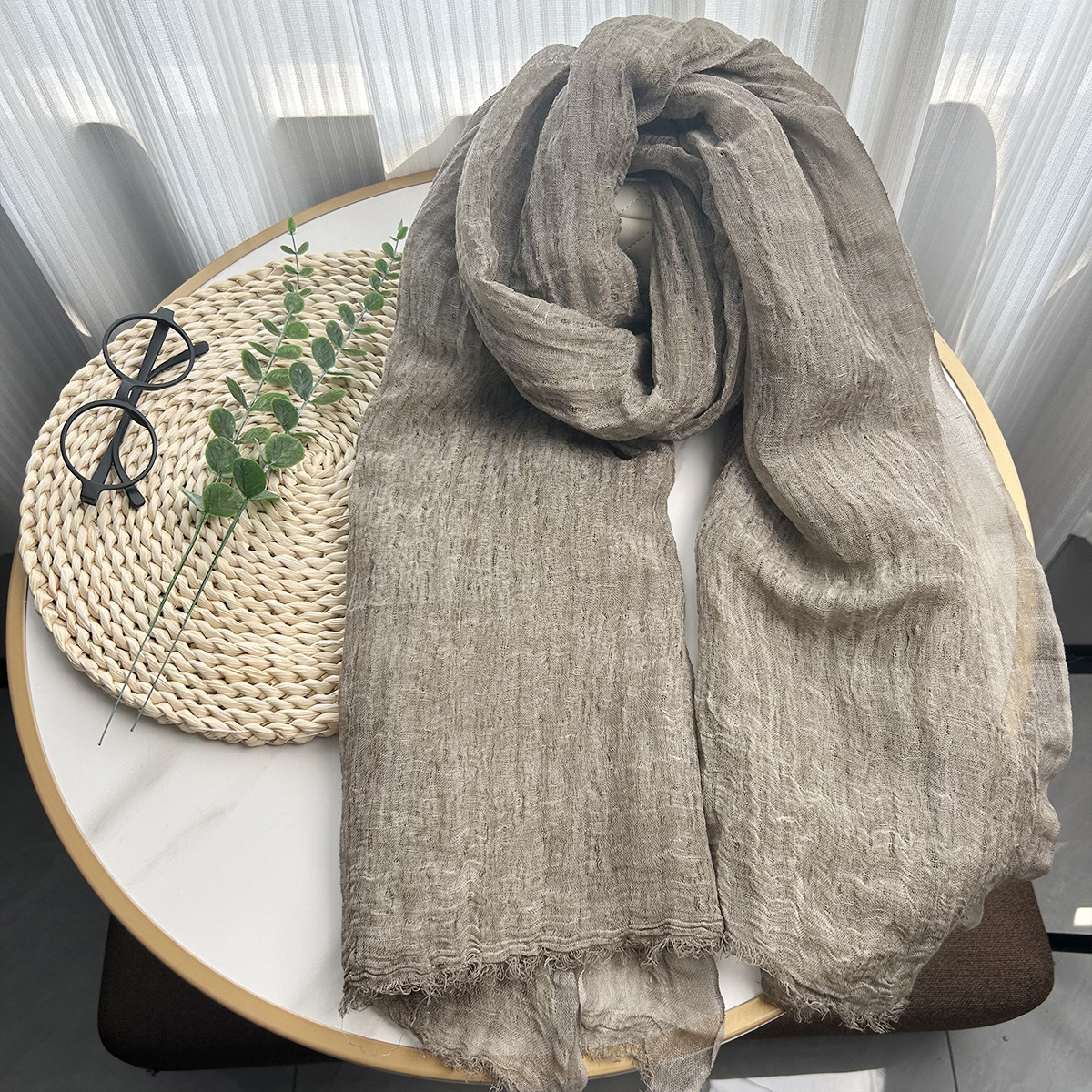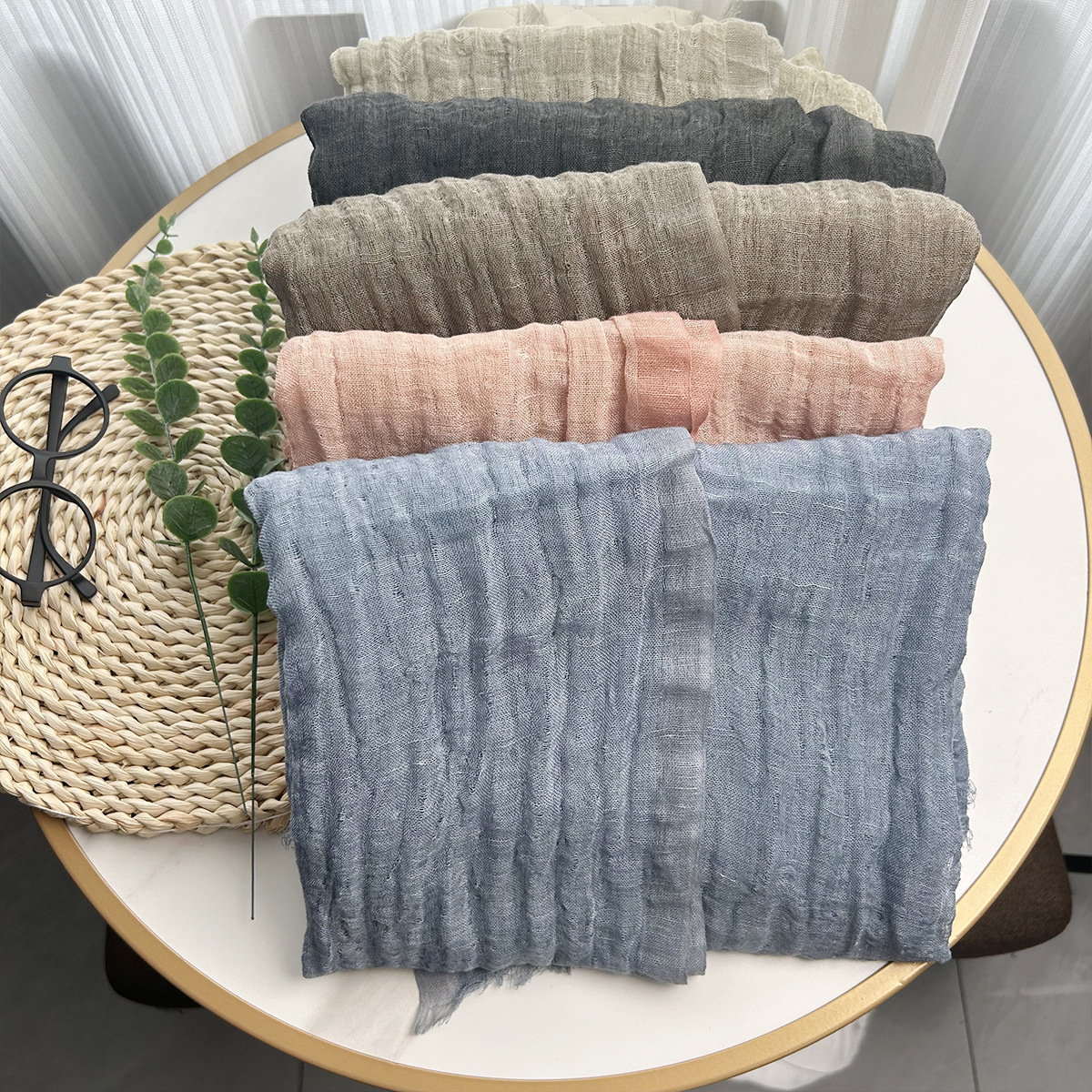 봄과 여름 2025 얇은 솔리드 컬러 리넨 스카프 타이-염료 레트로 스타일 여성면 및 리넨 스카프 술 선 스크린 목도리스토어 가기