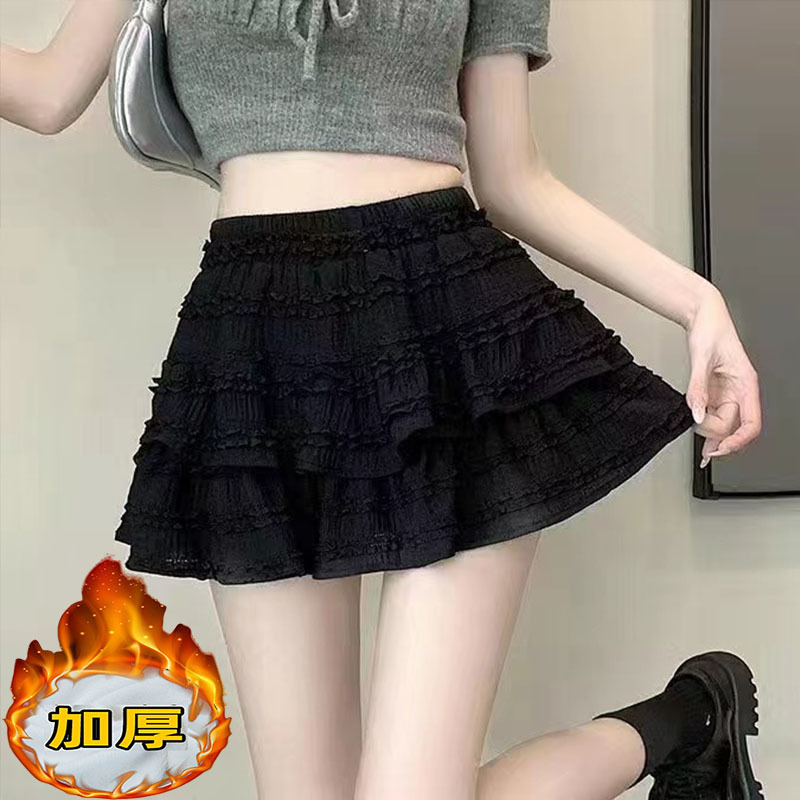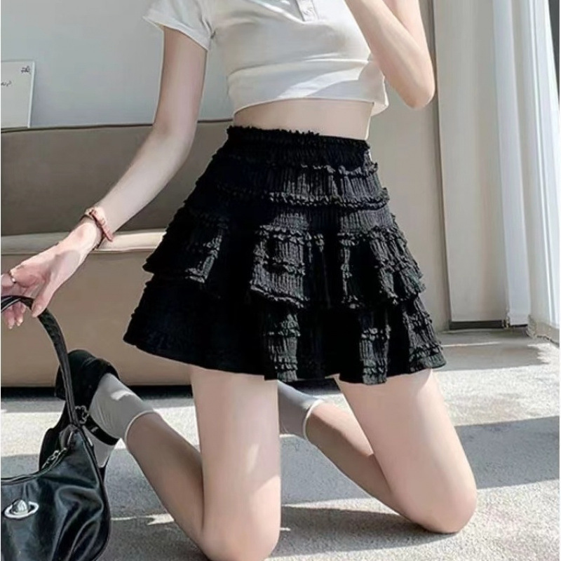 작은 핫걸 케이크 스커트 레이스 러플 투투 스커트 하이웨이스트 노출 방지 A라인 스커트 미니 스커트스토어 가기