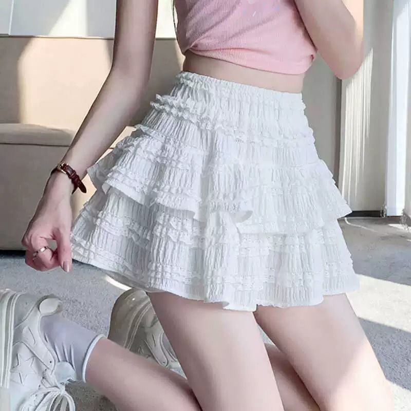작은 핫걸 케이크 스커트 레이스 러플 투투 스커트 하이웨이스트 노출 방지 A라인 스커트 미니 스커트