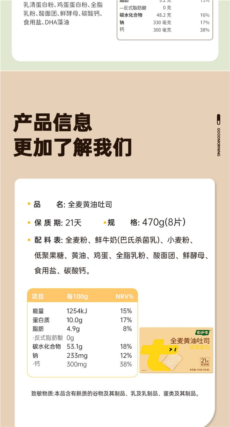 Qixiaoqi 우유 버터 두껍게 썬 토스트 빵 아침 식사 전체 상자 인스턴트 샌드위치 통밀 어린이 영양 간식