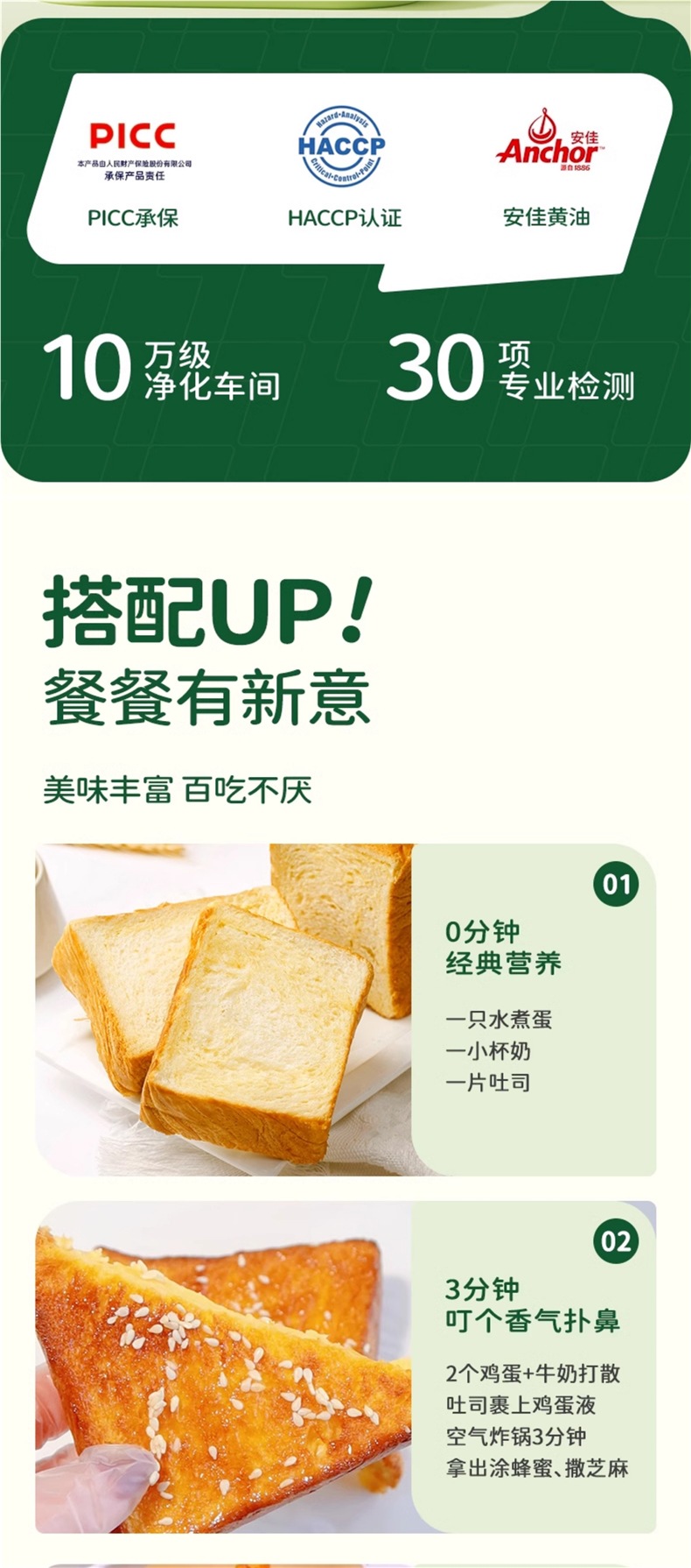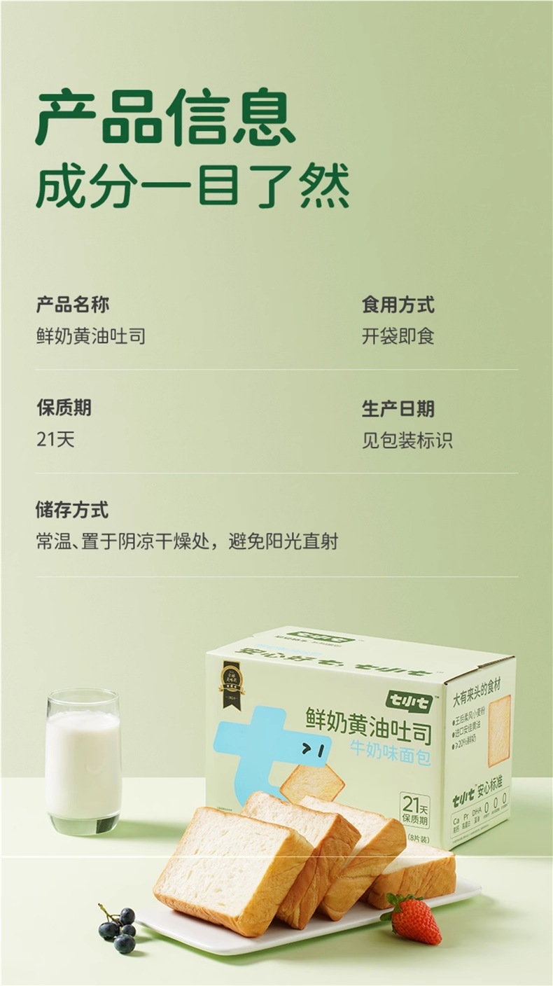 Qixiaoqi 우유 버터 두껍게 썬 토스트 빵 아침 식사 전체 상자 인스턴트 샌드위치 통밀 어린이 영양 간식스토어 가기