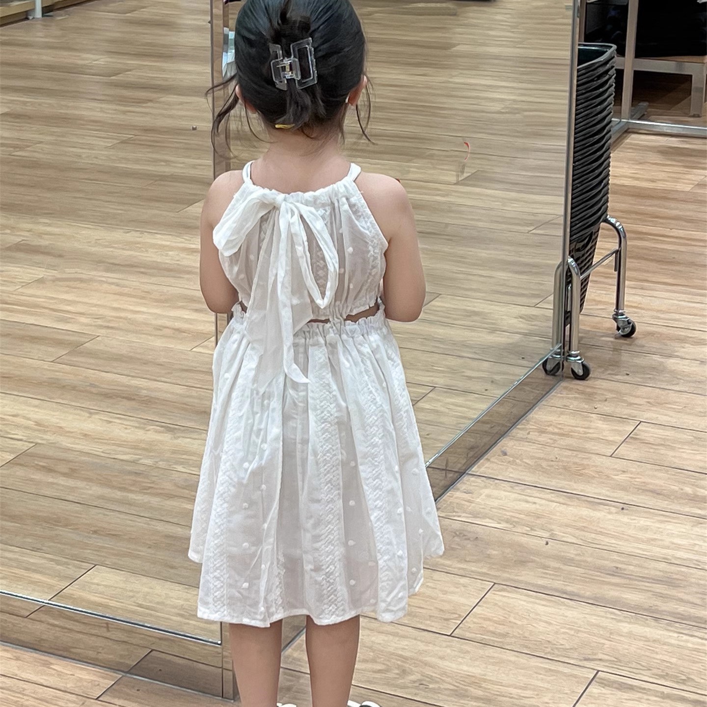 소녀 슬링 원피스 여름 어린이 서양식 허리에 노출 된 자수 비치 원피스 아기 소녀 빈 스커트 0219A010