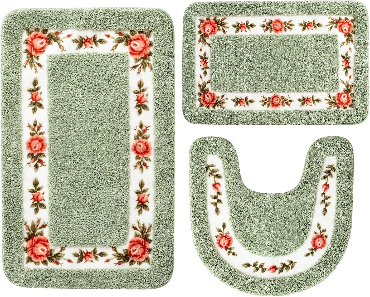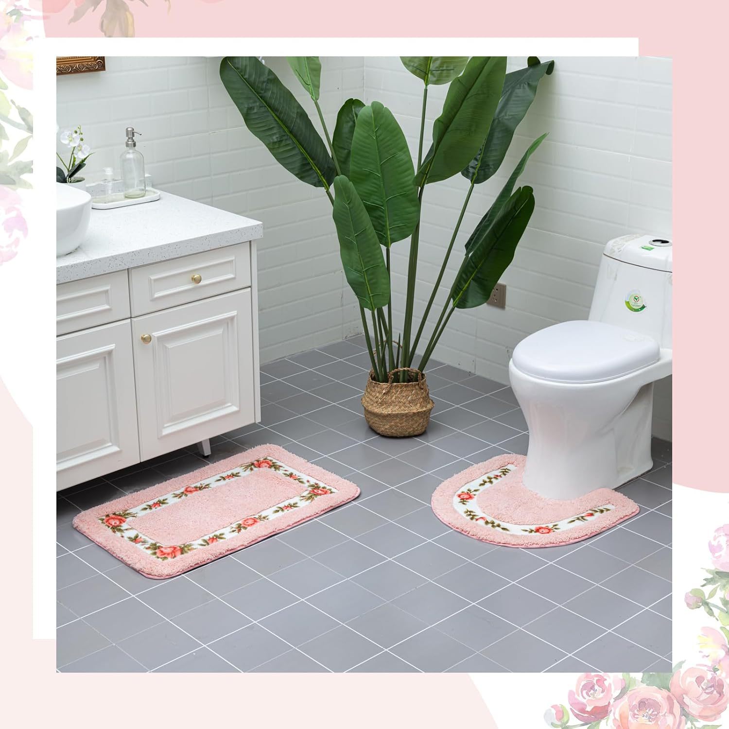 모조 캐시미어 심플 솔리드 컬러 꽃무늬 욕실 바닥 매트 욕실 U자형 변기 바닥 매트 흡수성 미끄럼 방지 매트 3종 세트스토어 가기