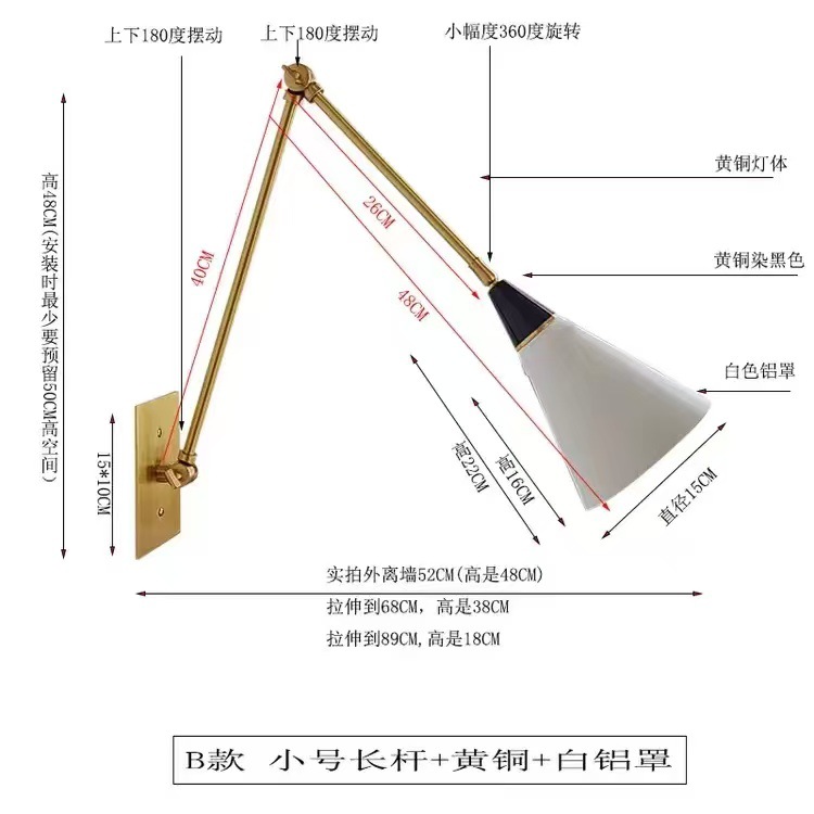 국경 간 벽 램프 미국 복고풍 황동 긴 팔 접이식 벽 램프 디자이너 B&B 거실 식당 연구 배경 벽