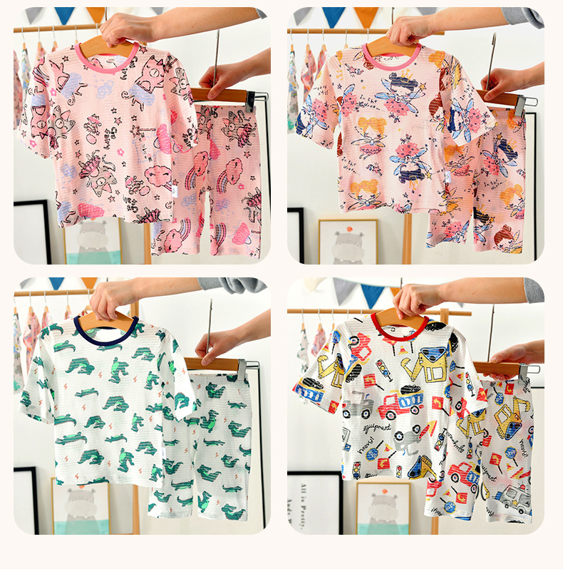 여름 아동 7부소매 홈웨어 세트, 아동 홈웨어 에어컨복, 유아복 세트