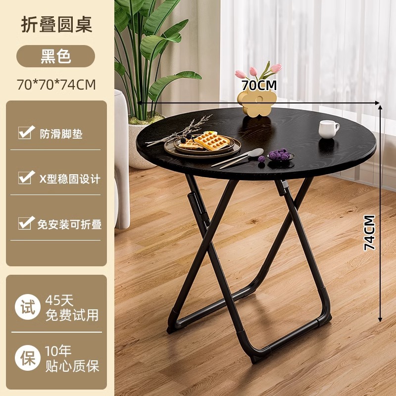 • [접이식 및 설치 불필요] 70각 테이블, 얼룩 방지 블랙