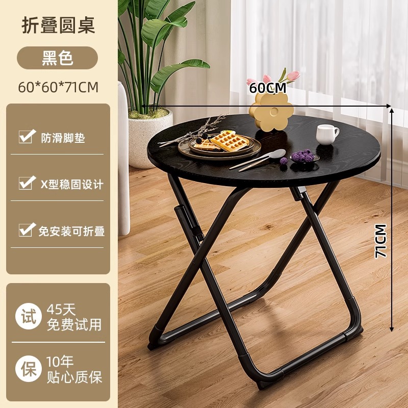 • [접이식 및 설치 불필요] 60각 테이블, 얼룩 방지 블랙
