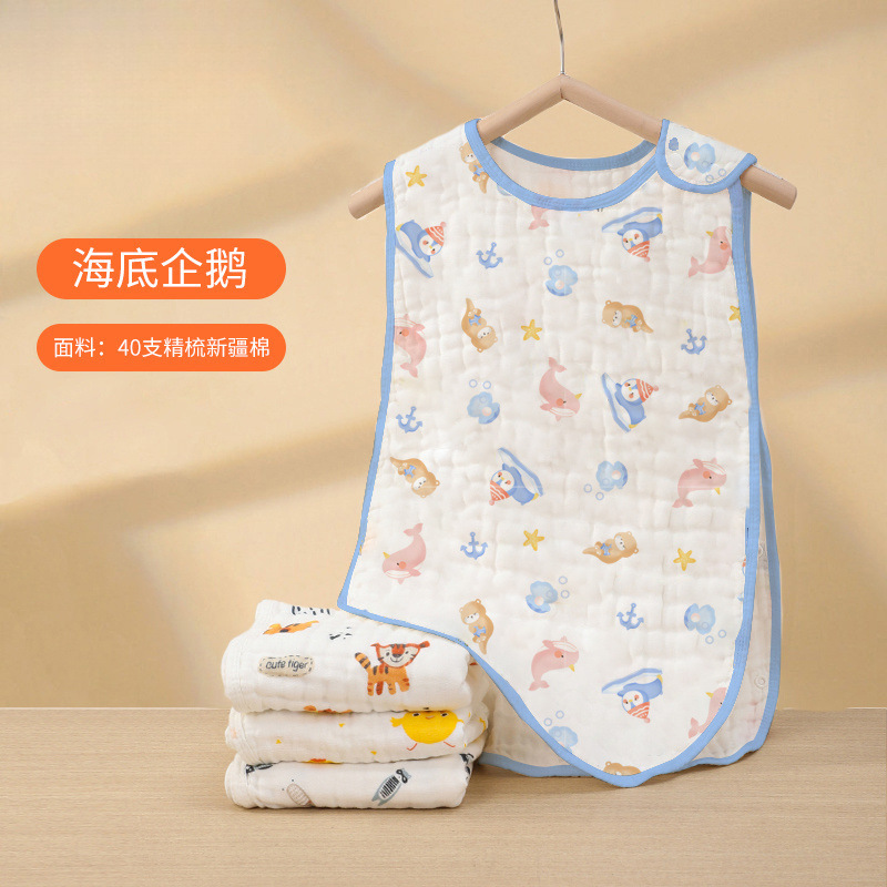 아기 침낭 여름 얇은 아기 순면 거즈 민소매 조끼 잠옷 안티 킥 어린이 안티 킥 이불 유물스토어 가기
