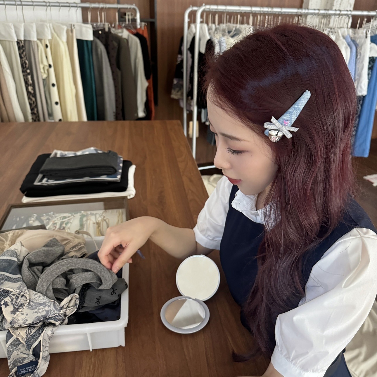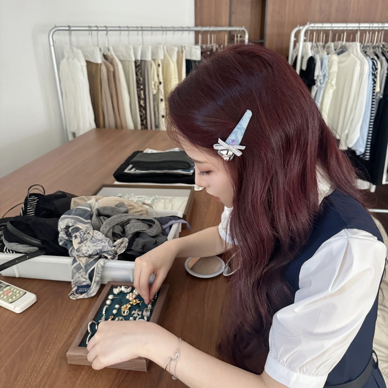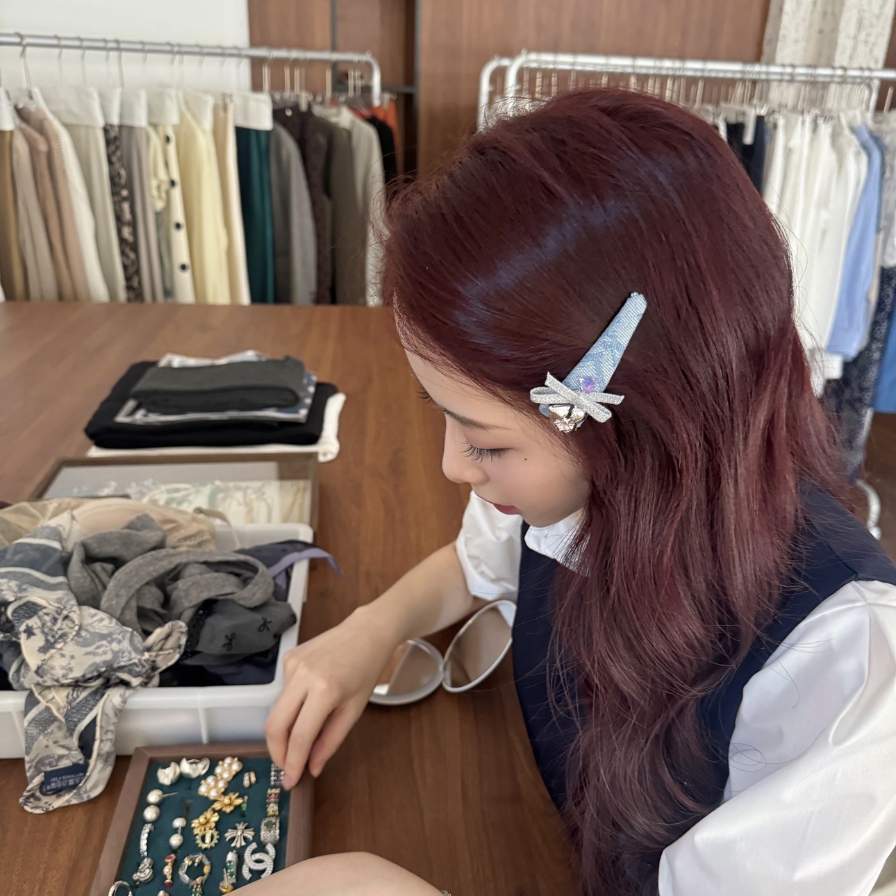 한국 스타일 소녀 리본 하트 모양 큐빅 데님 머리핀 고급 오리주둥이 앞머리 사이드 헤어 액세서리 봄 신상품스토어 가기
