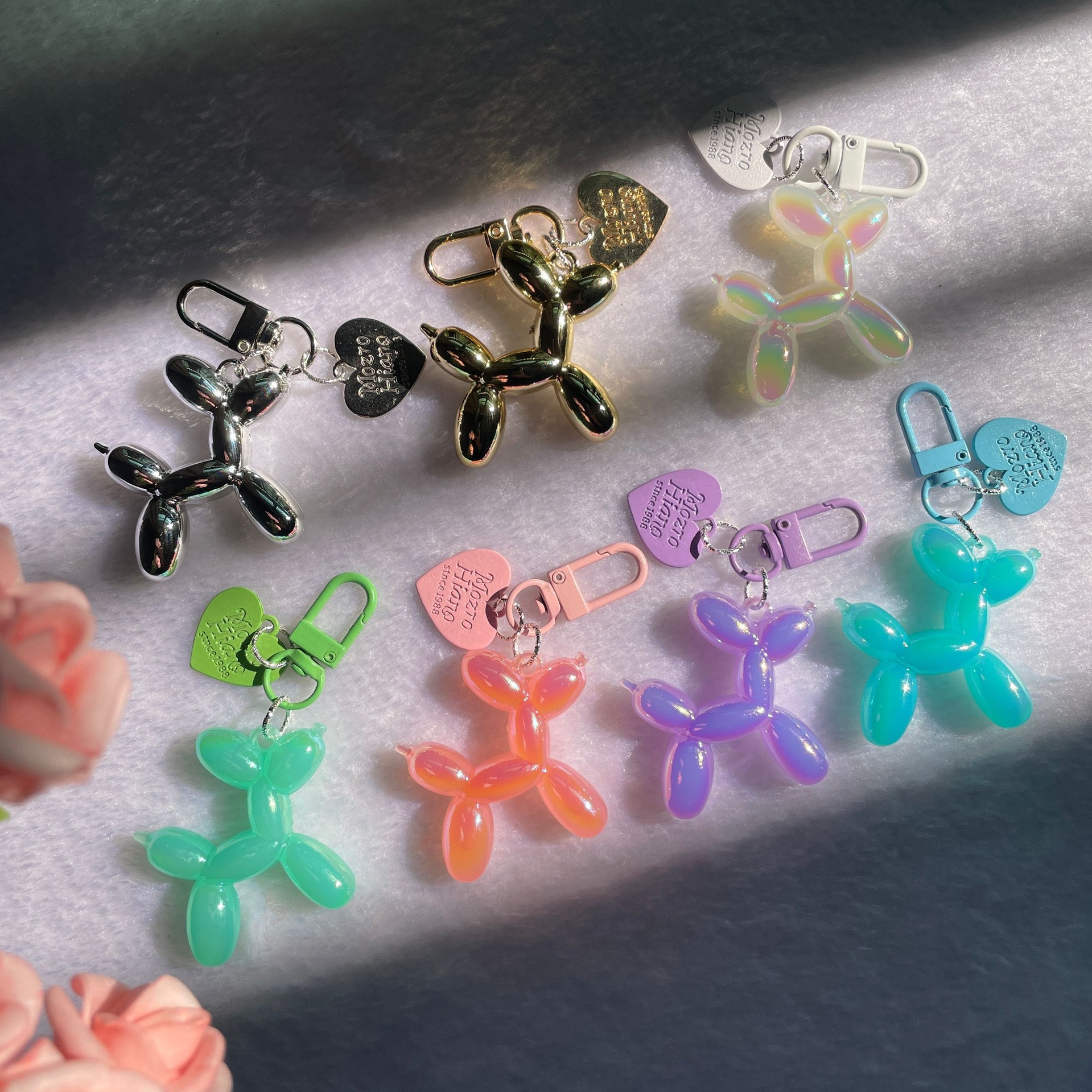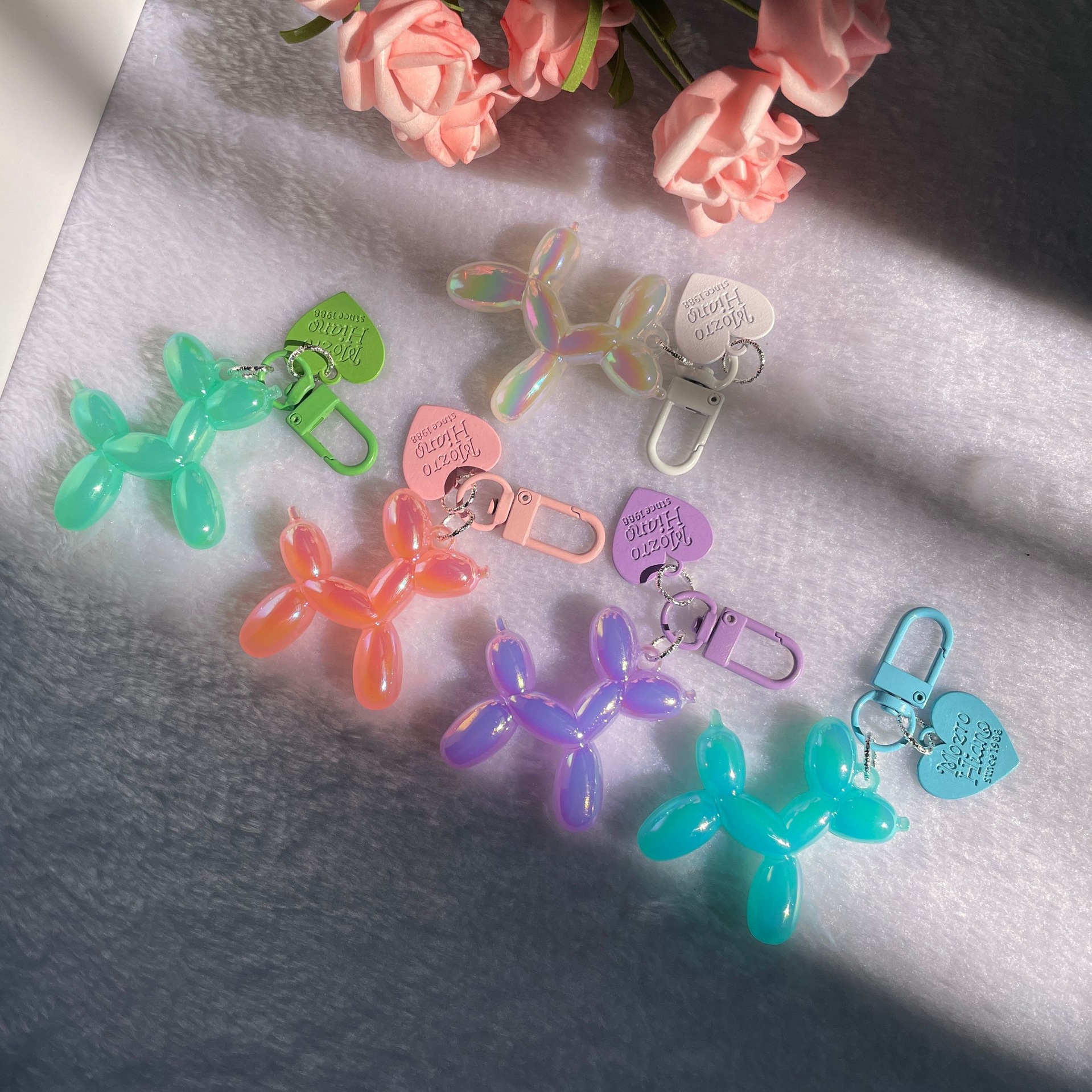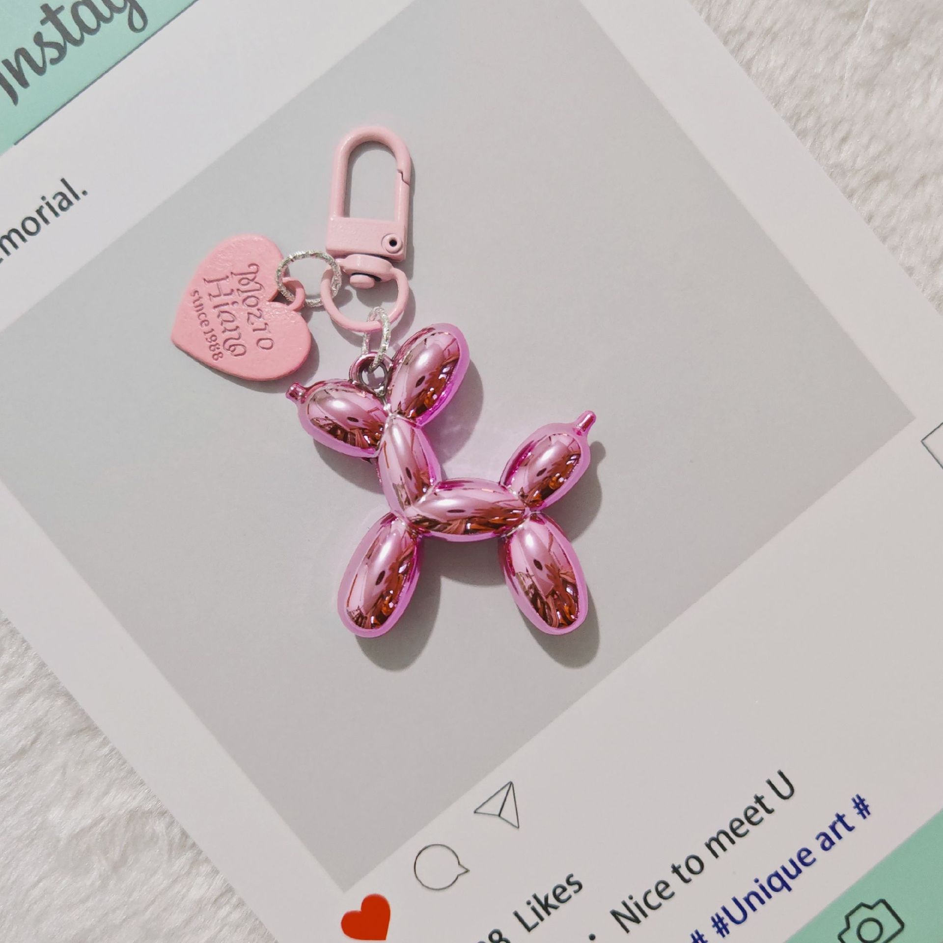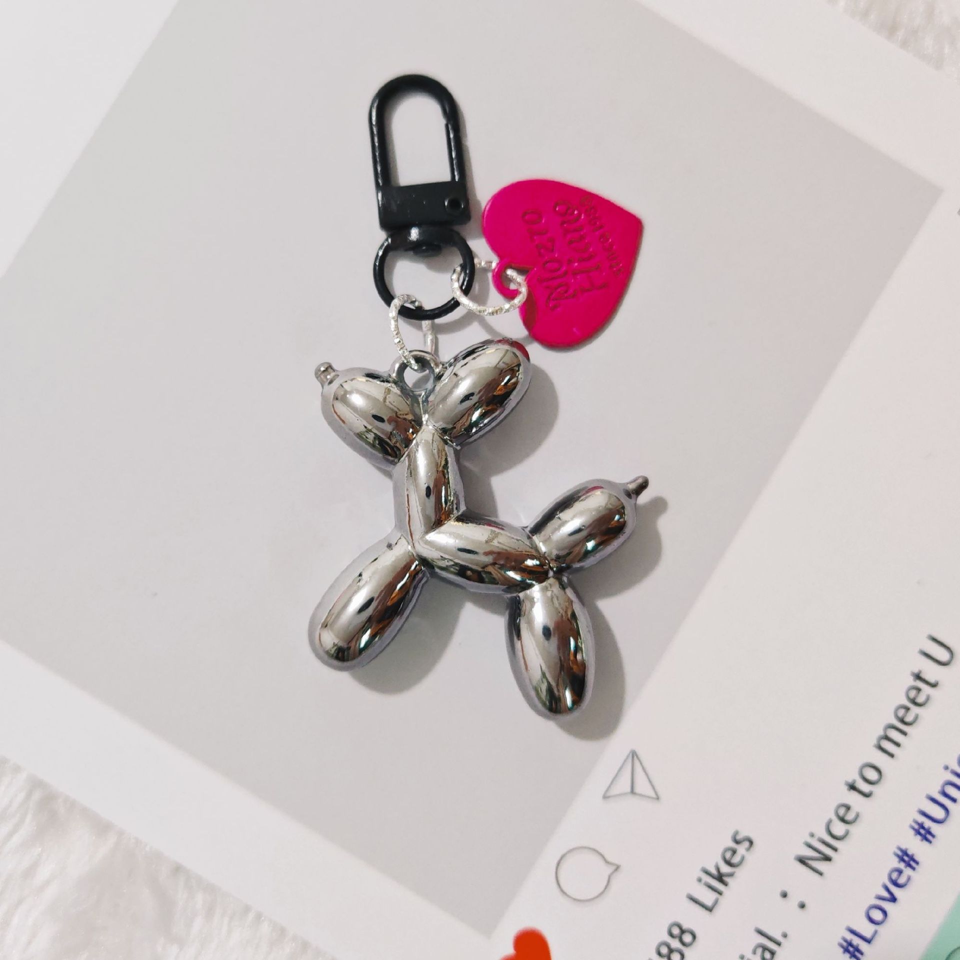 로즈 레드와 블랙 키체인, 인기 있는 도파민 펜던트, 여성 인터넷 연예인 고급 틈새 수제 풍선 개 가방 펜던트스토어 가기