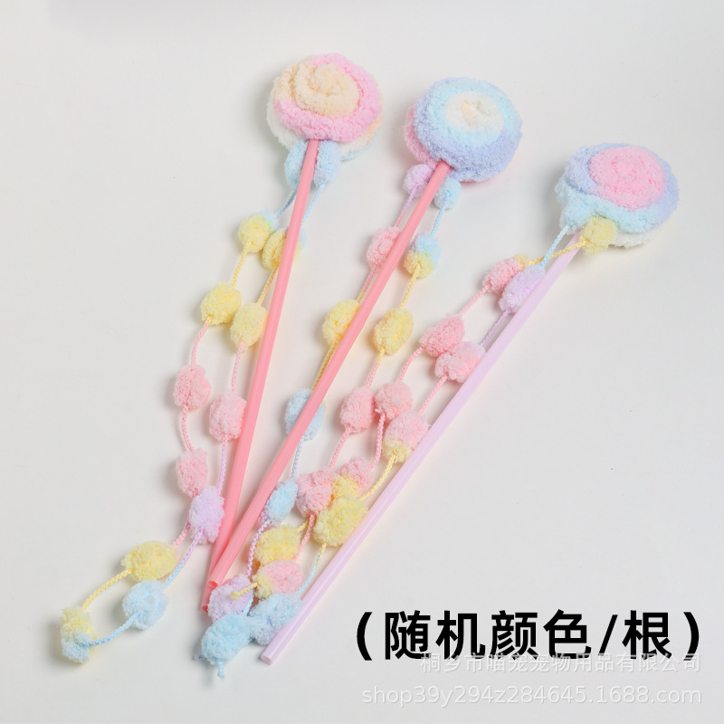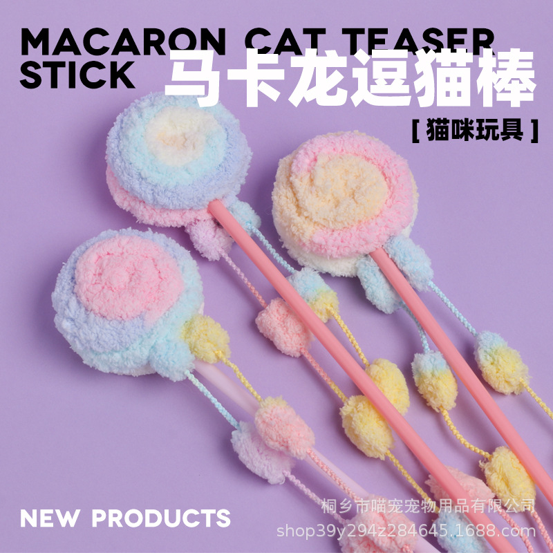 마카롱 고양이 재미 있은 스틱 고양이 장난감 애완 동물 용품 공장 도매 봉제 요정 만화 긁힘 방지 및 물림 방지 대화 형스토어 가기