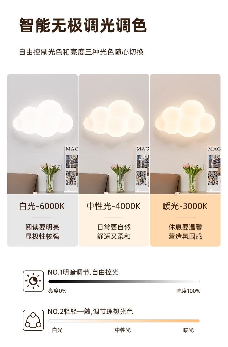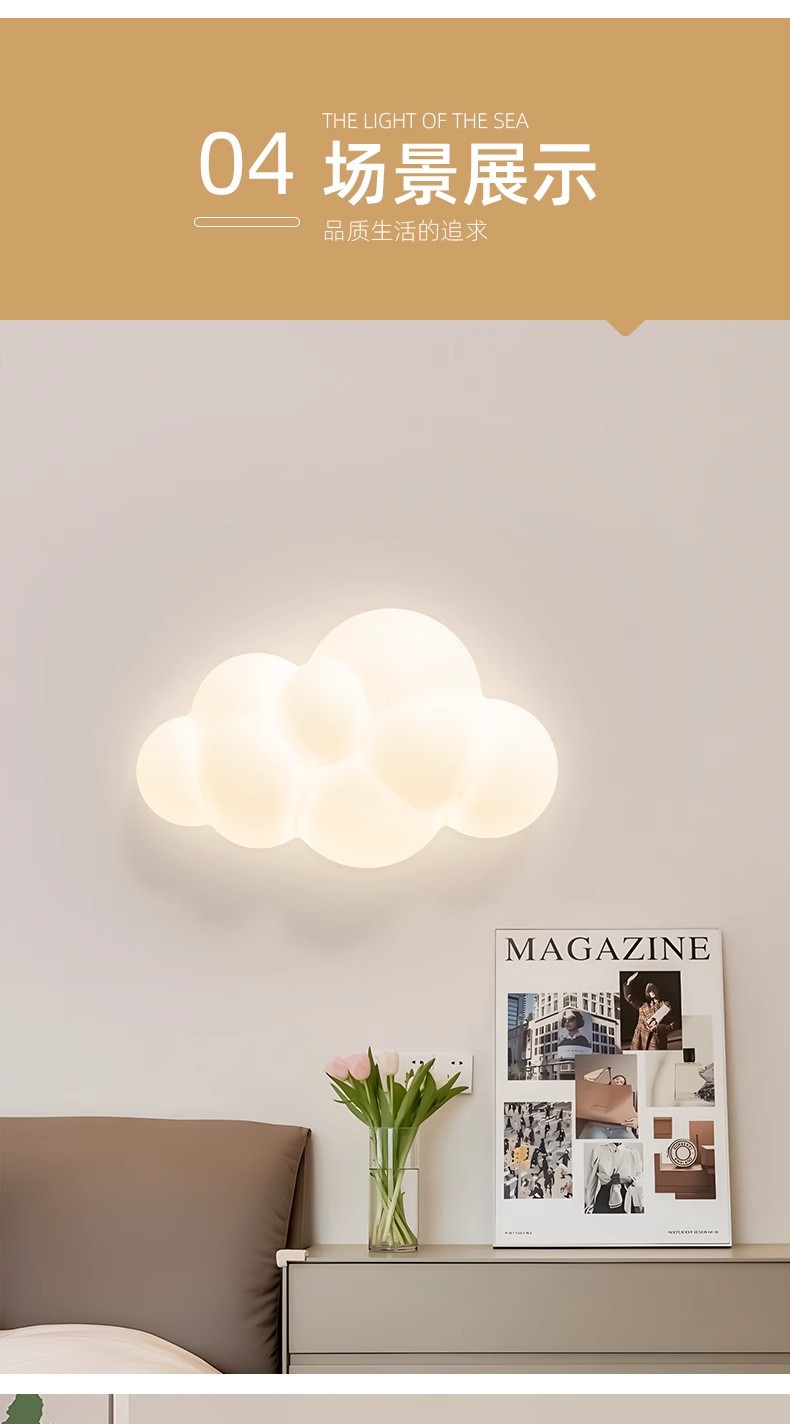 구름 벽 램프 크림 스타일 침실 거실 배경 벽 램프 따뜻하고 창조적 인 어린이 방 LED 눈 보호 머리맡 램프