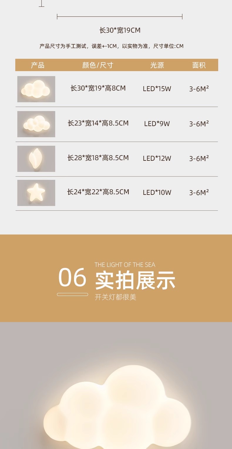 구름 벽 램프 크림 스타일 침실 거실 배경 벽 램프 따뜻하고 창조적 인 어린이 방 LED 눈 보호 머리맡 램프스토어 가기