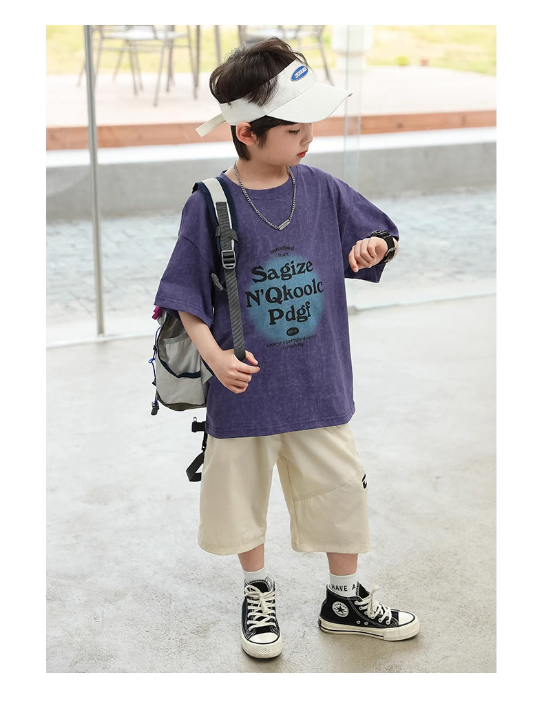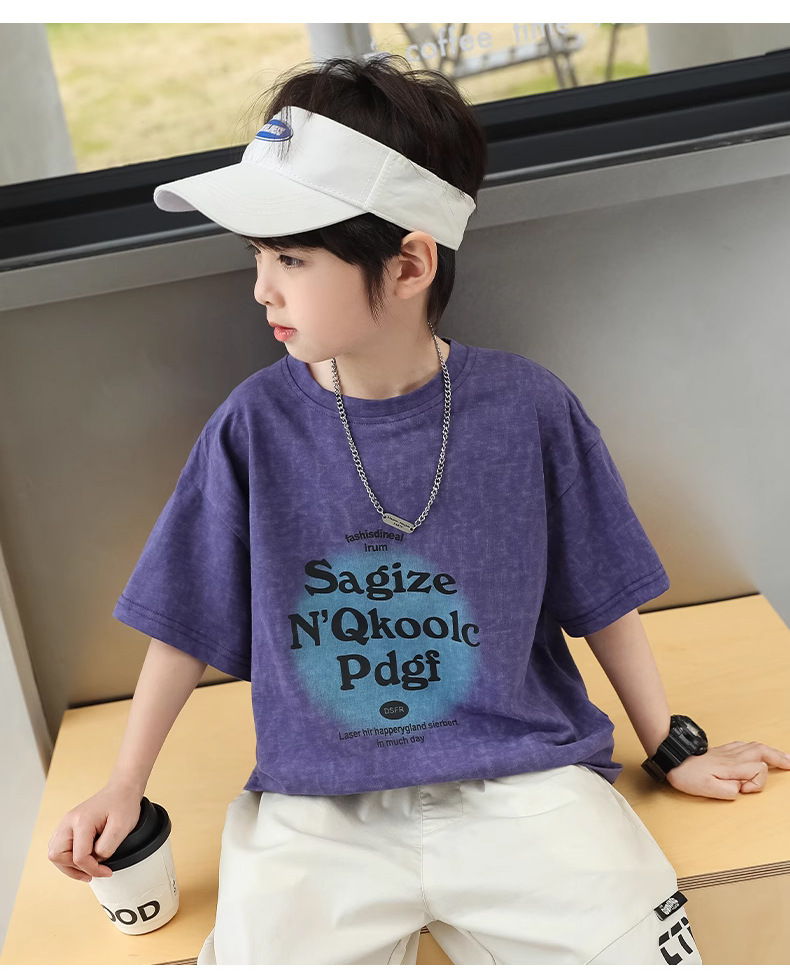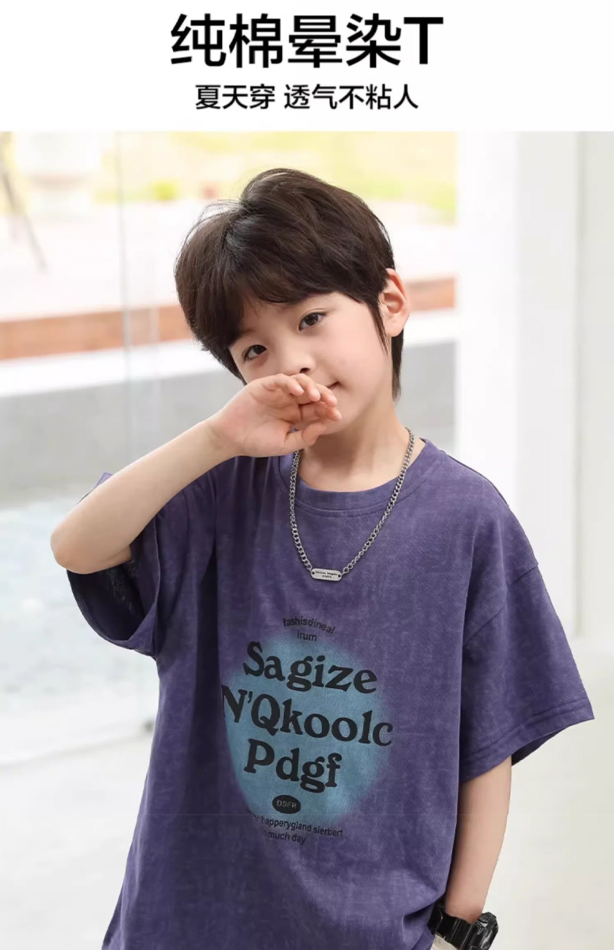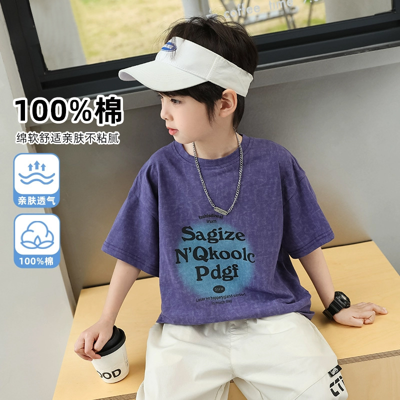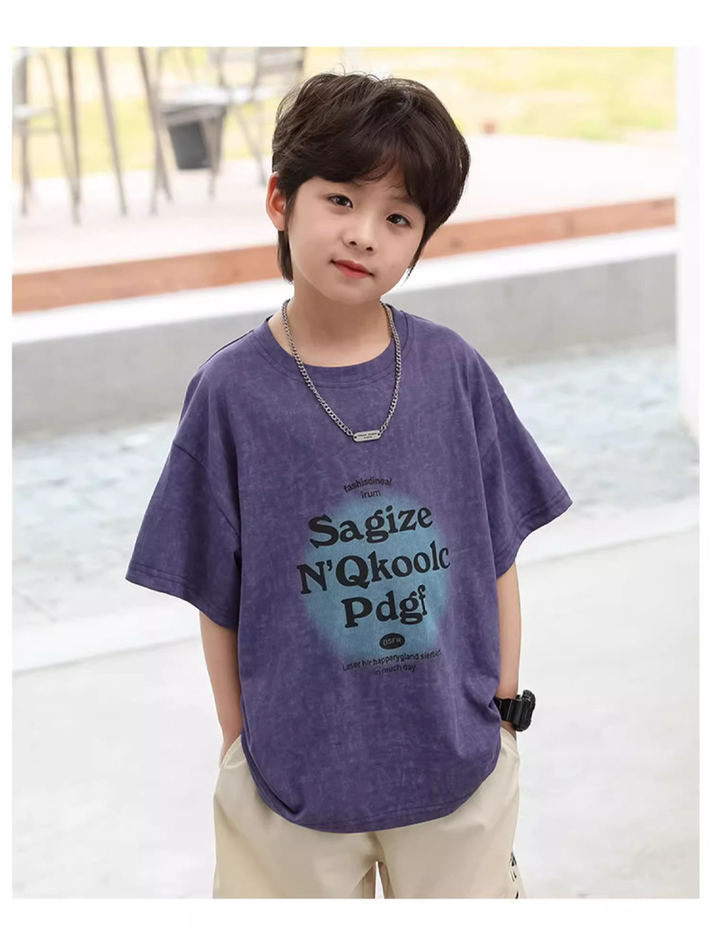 어린이 퓨어 코튼 반팔 티셔츠 중대형 어린이 서양식 헤일로 반소매 소년 핸즈맨베이스 셔츠 보이의 탑 여름스토어 가기
