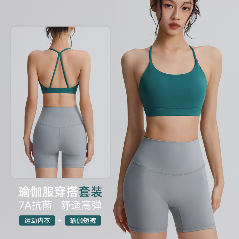 [세트] 섹시한 아름다운 등 스포츠 속옷 3점 요가 반바지 속건성 통기성 요가 운동복스토어 가기