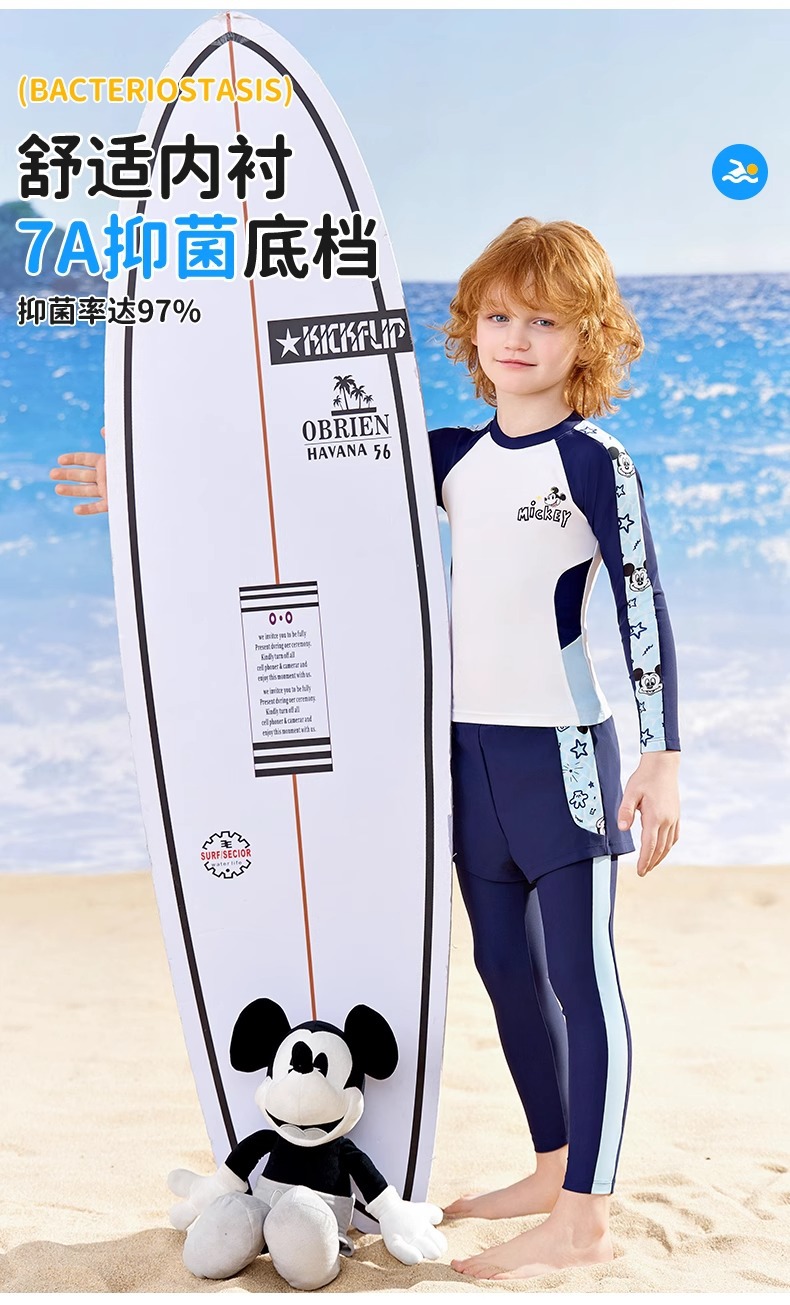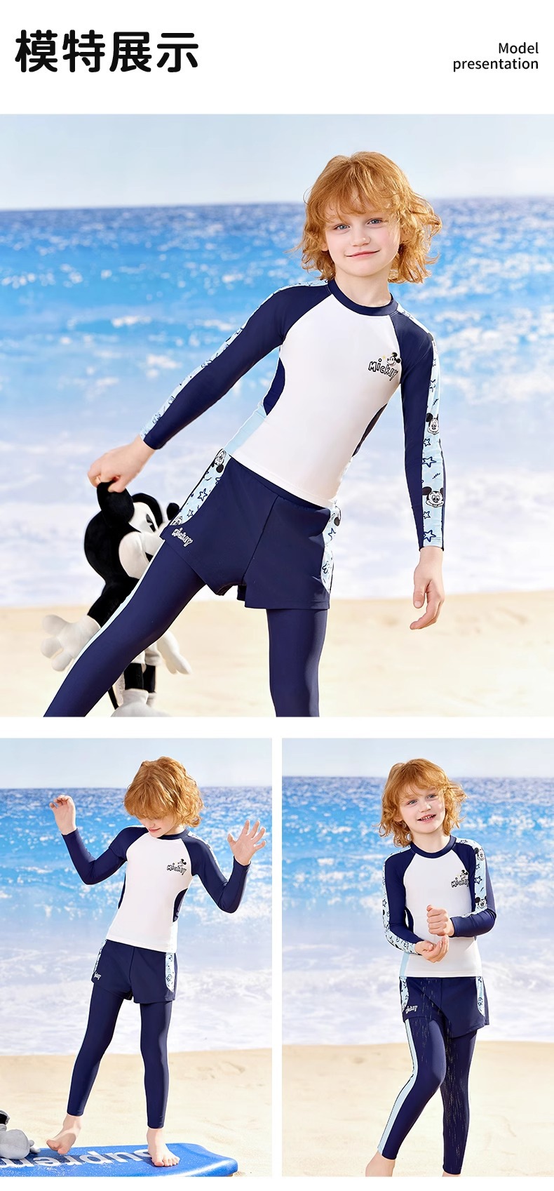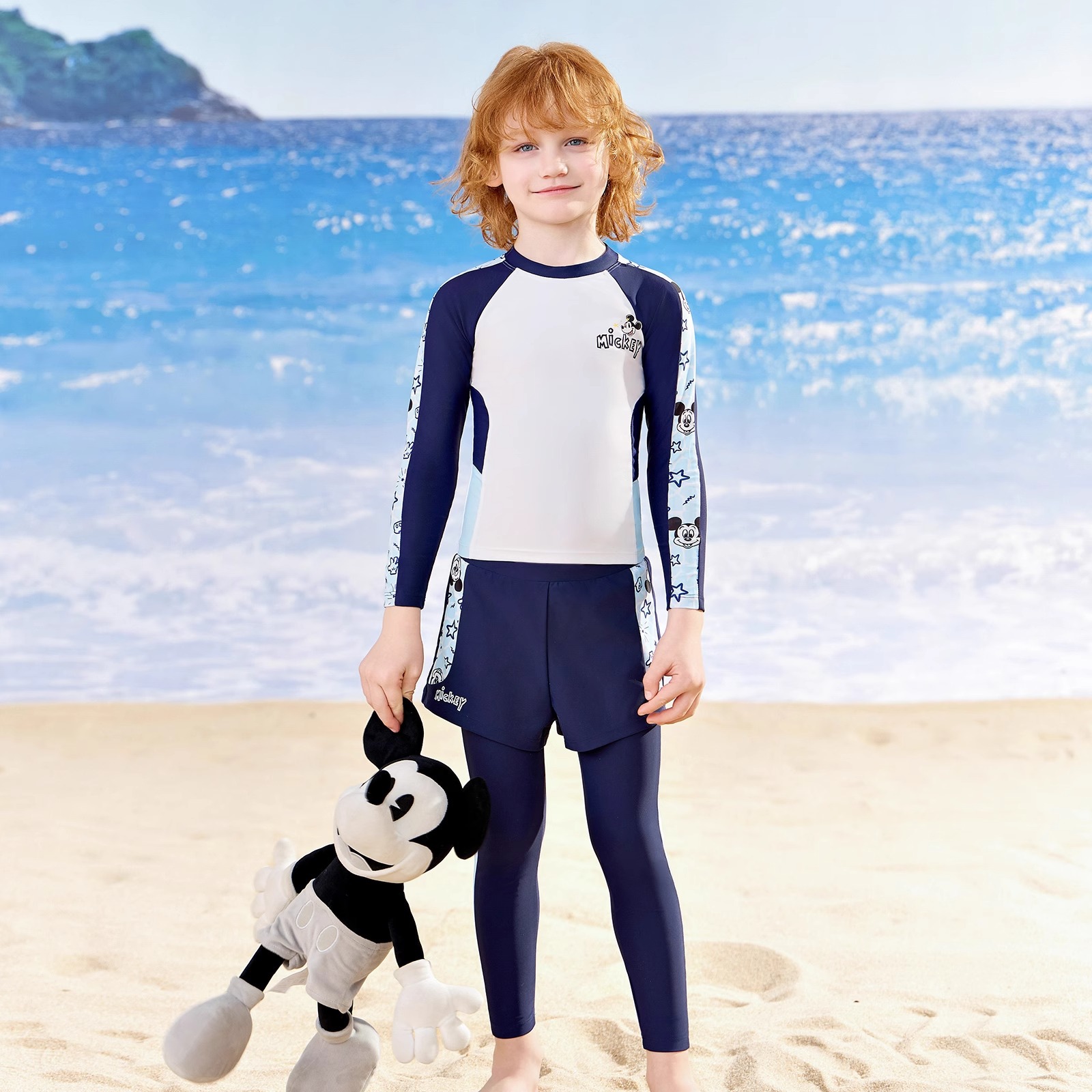 디즈니 2025 새로운 어린이 수영복 선스크린 긴 소매 분할 소년 해변 서핑 스포츠 빅 키즈 수영복