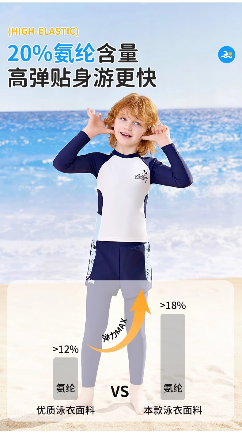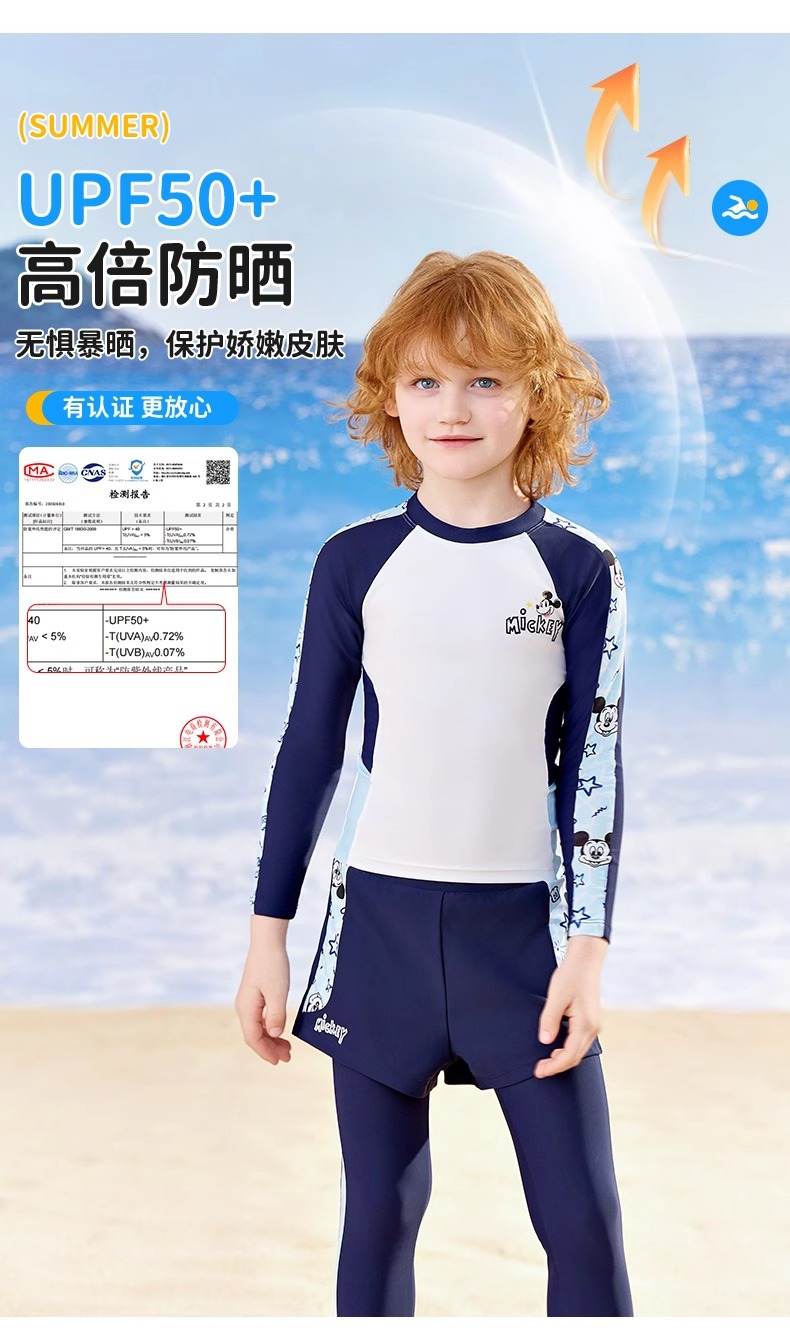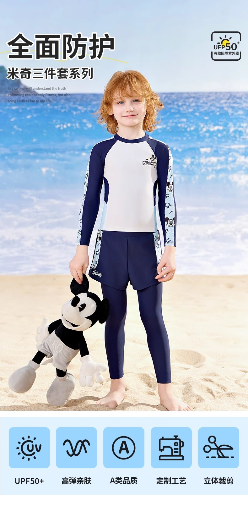 디즈니 2025 새로운 어린이 수영복 선스크린 긴 소매 분할 소년 해변 서핑 스포츠 빅 키즈 수영복