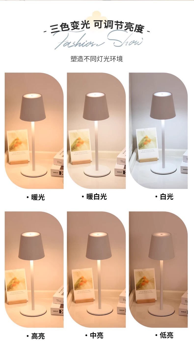 새로운 철 높은 발 테이블 램프 침실 침실 터치 창조적 인 야간 조명 현대 간단한 거실 충전식 작은 테이블 램프