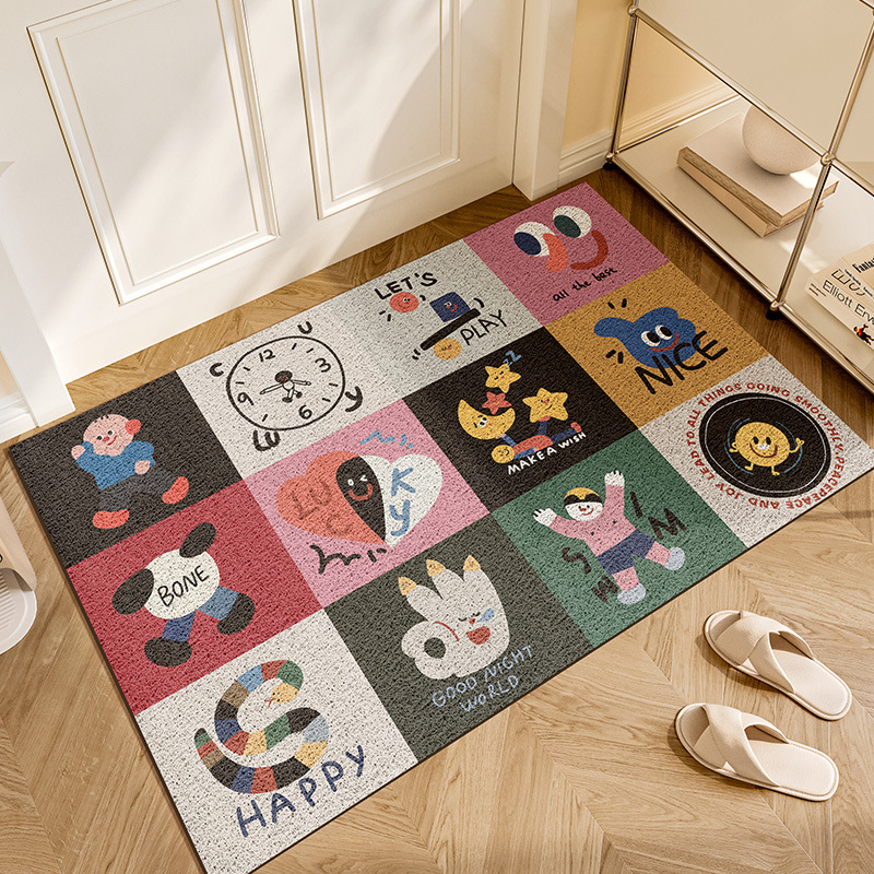 만화 입구 매트는 미끄럼 방지 매트 변경 깔창을 쉽게 처리 할 수있는 먼지 실크 링 바닥 매트 문을 긁는 입구 진흙을 절단 할 수 있습니다.스토어 가기