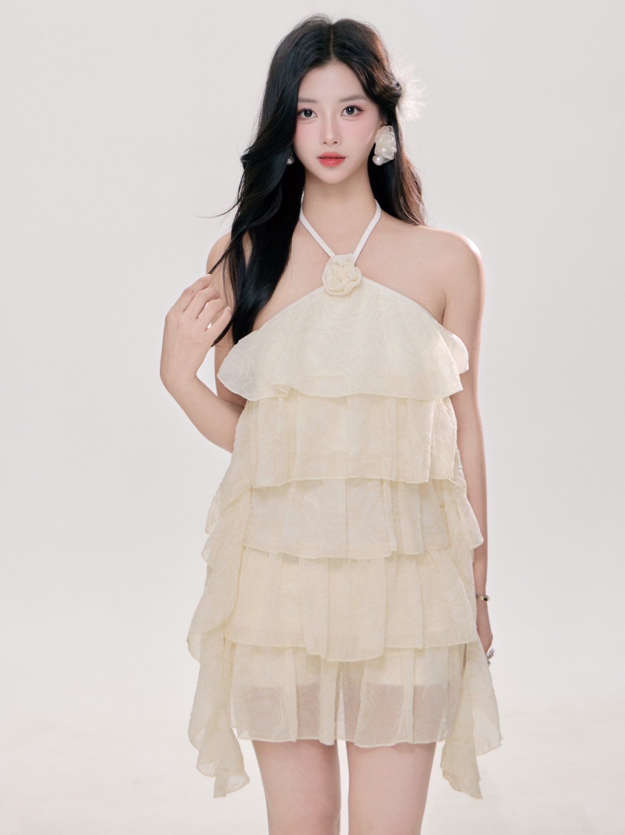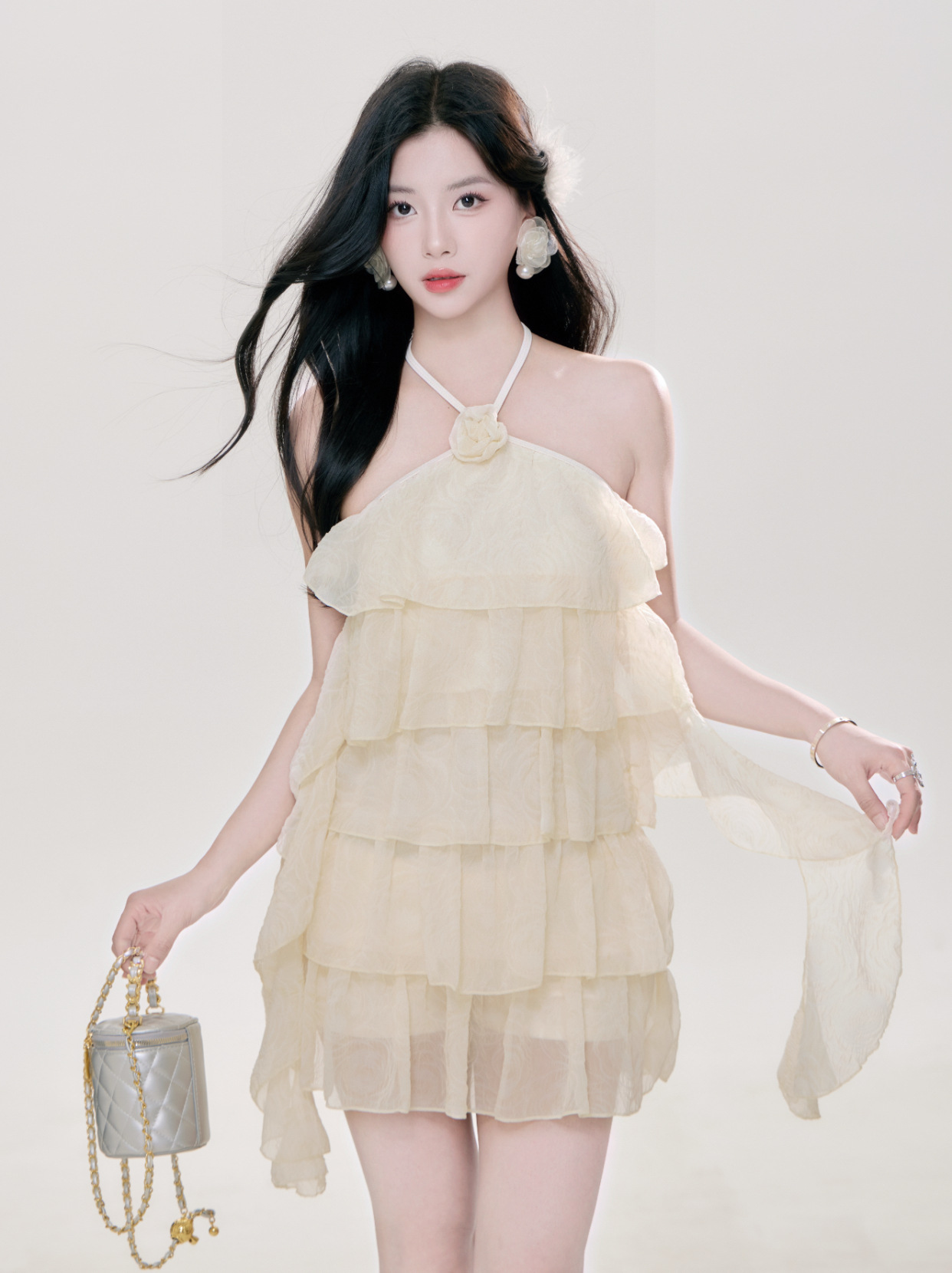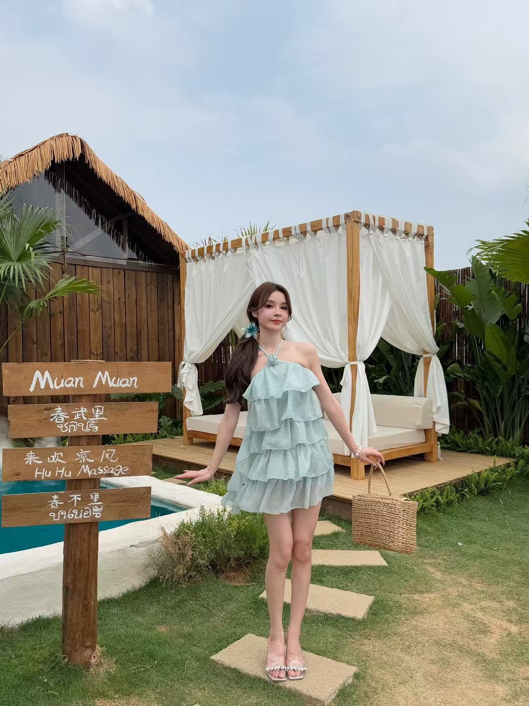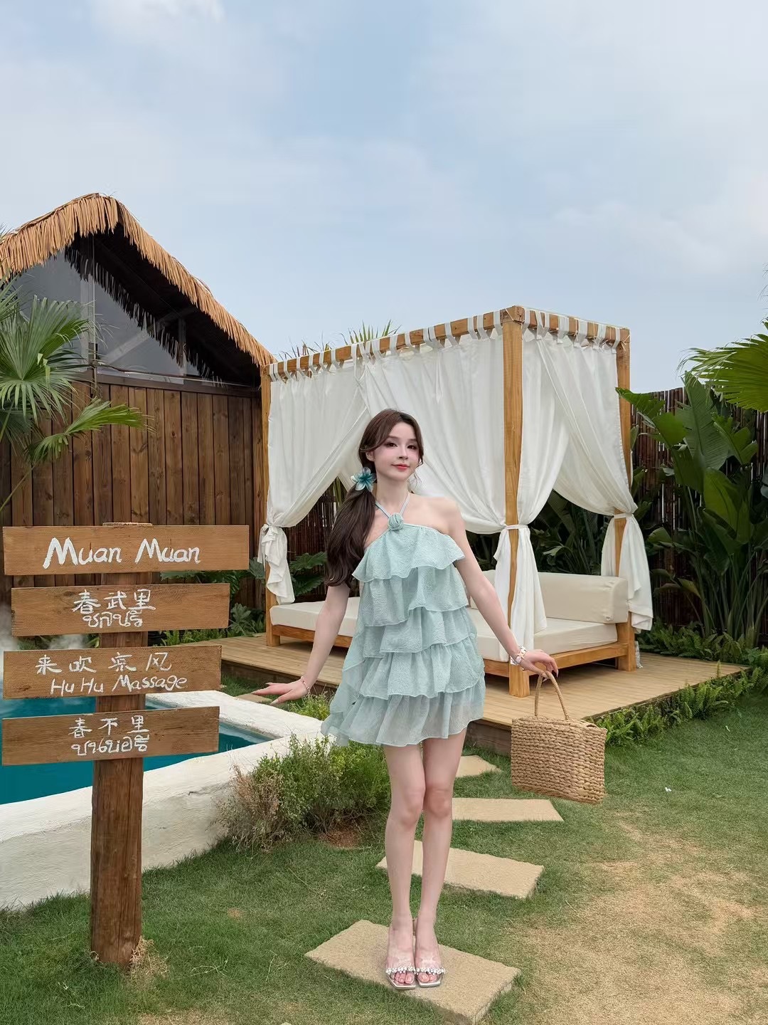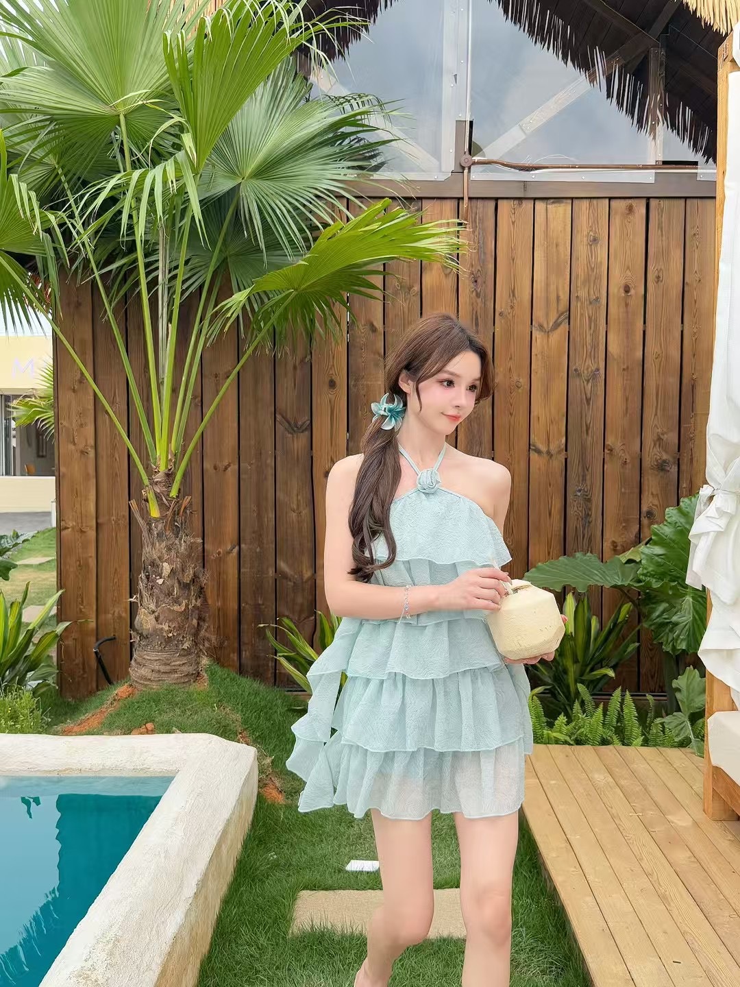 온천 수영복 여성용 순수한 매력 입체 꽃무늬 슬림핏 홀터넥 패셔너블한 핫걸 슬림핏 러플 스티치 케이크 스커트스토어 가기